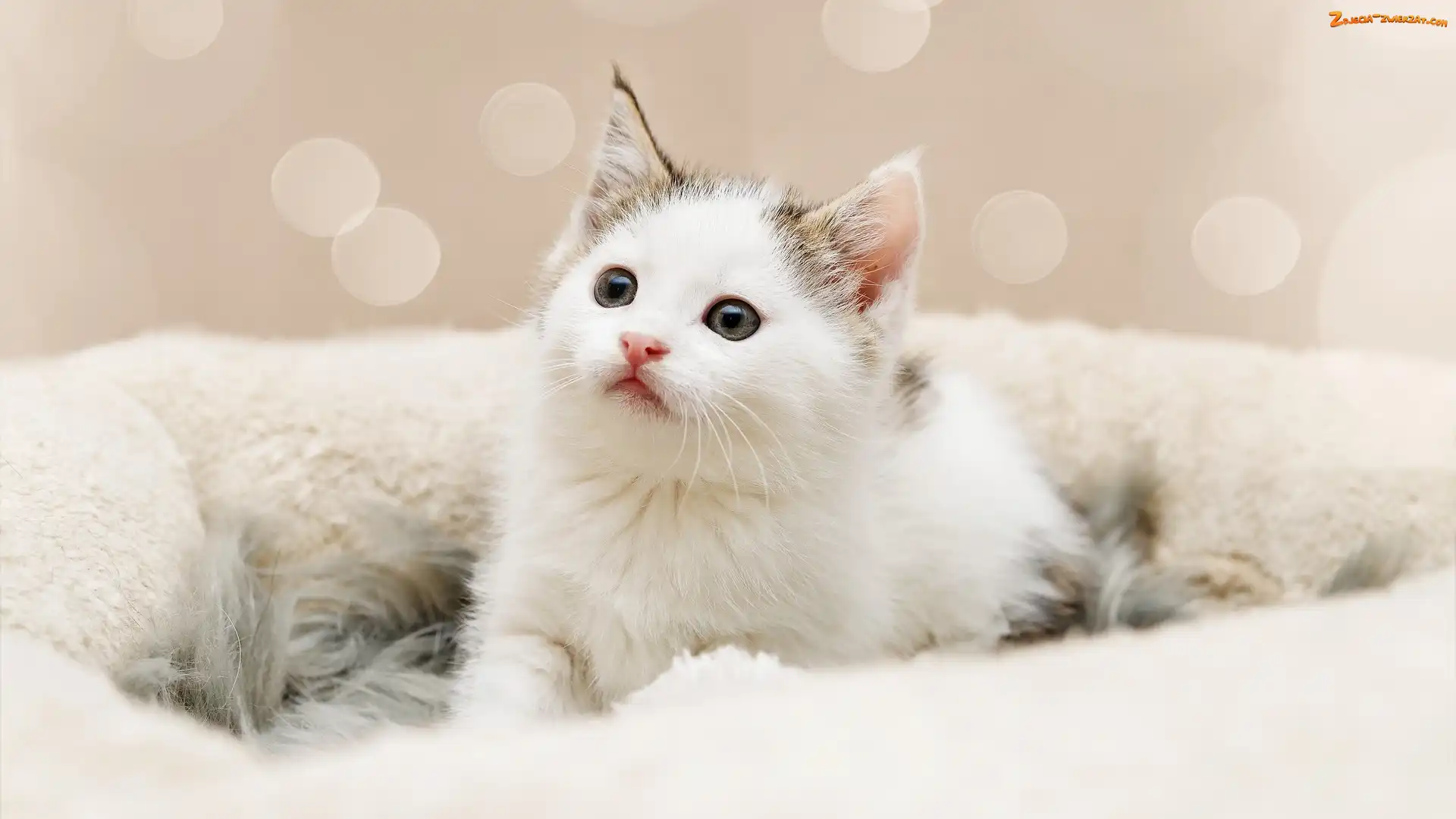 Zdjęcie: Kot, Mały, Legowisko, Futrzane, Biały, Kotek