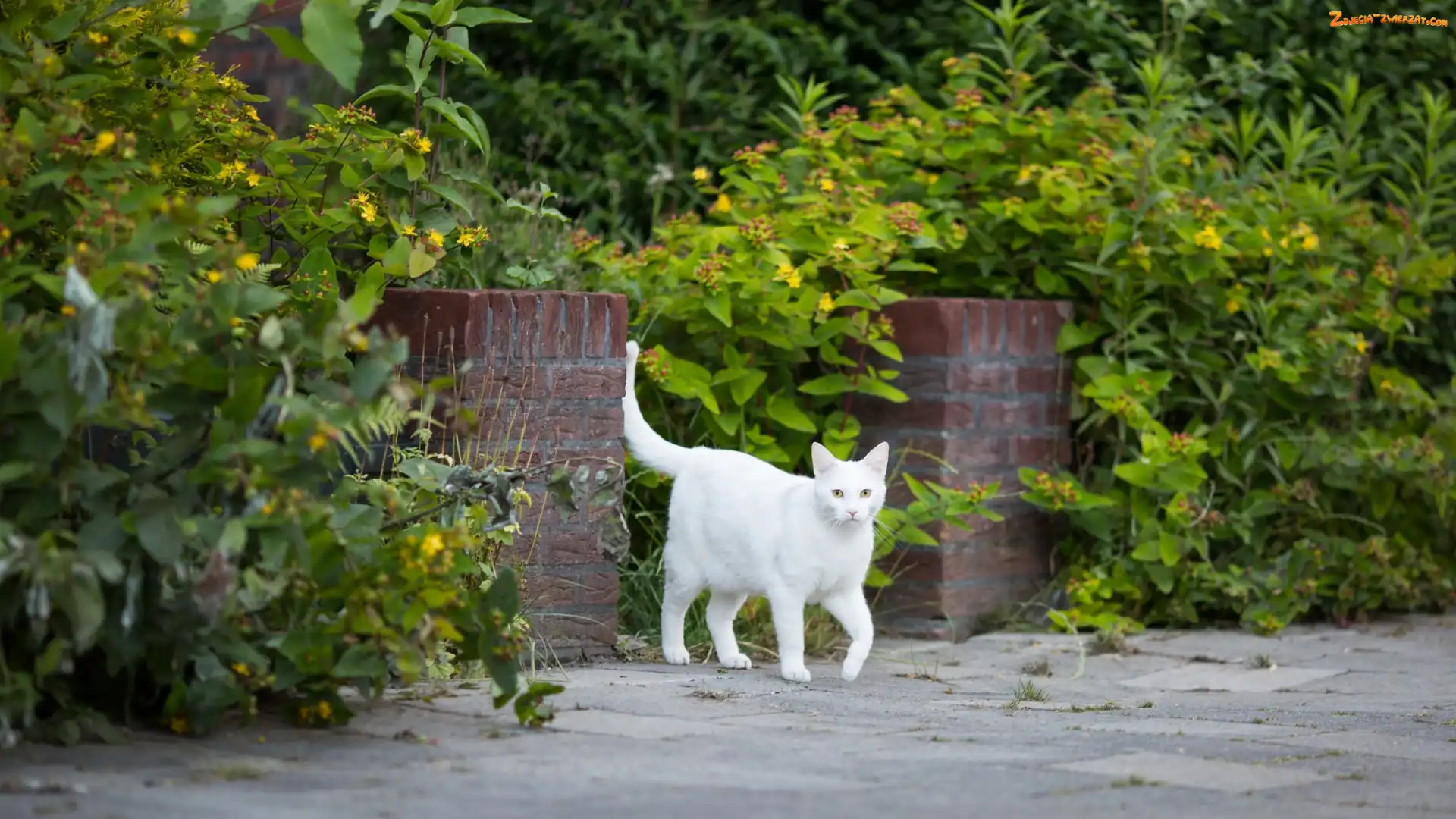 Zdjęcie: Kot, Zarośla, Biały, Chodnik