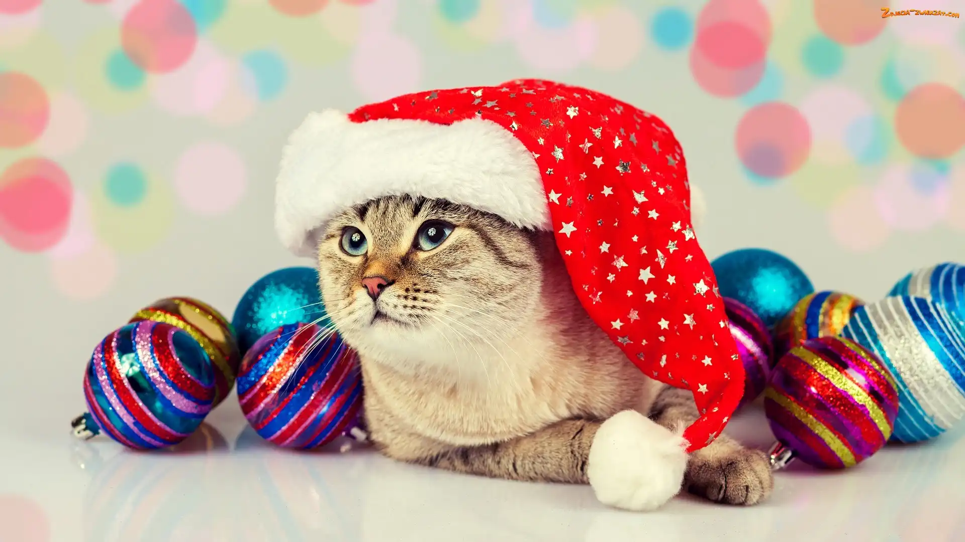 Zdjęcie: Świąteczne, Bombki, Czapka, Kot, Mikołaja
