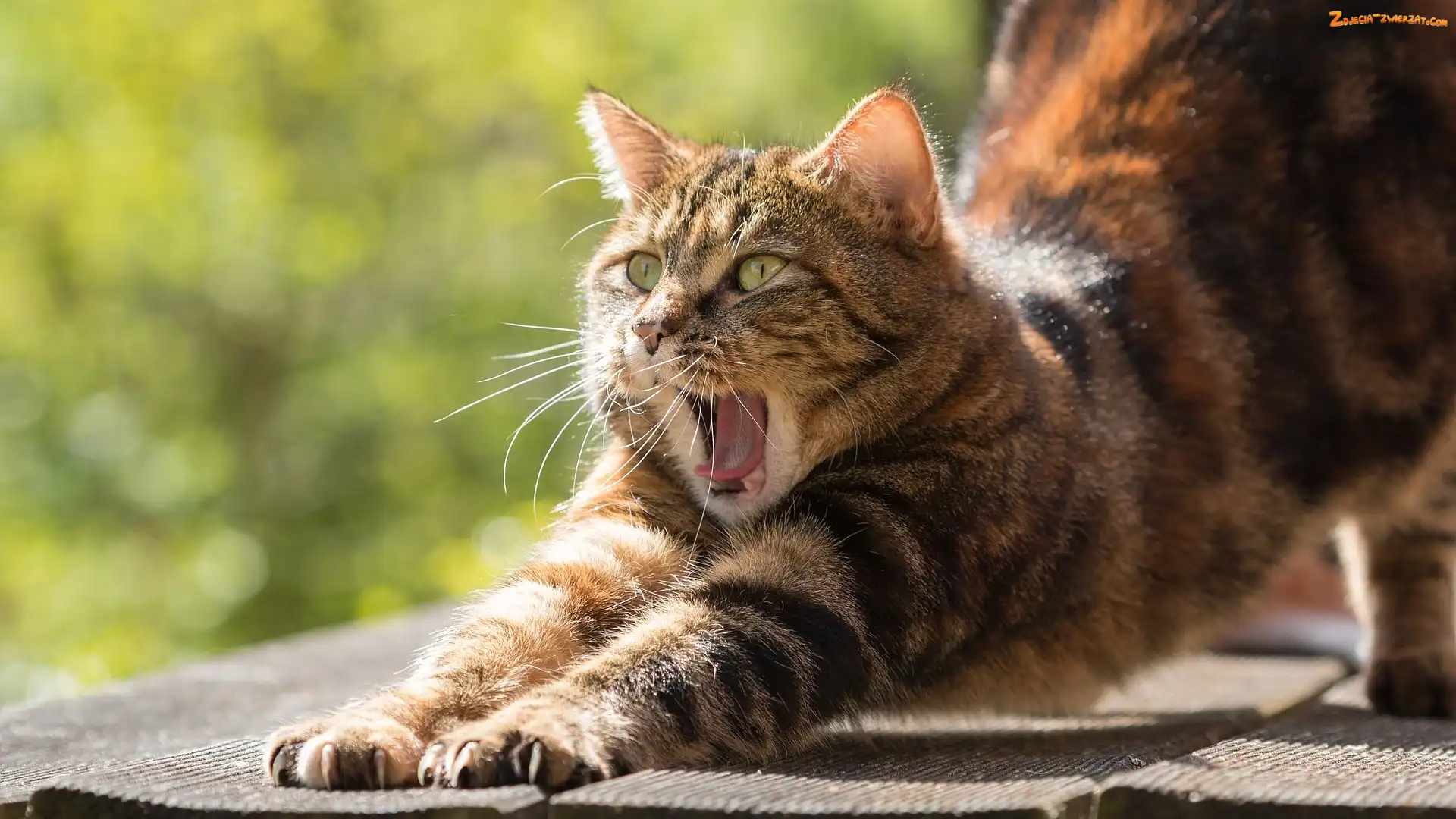 Zdjęcie: Kot, Rudo-brązowy, Ziewający