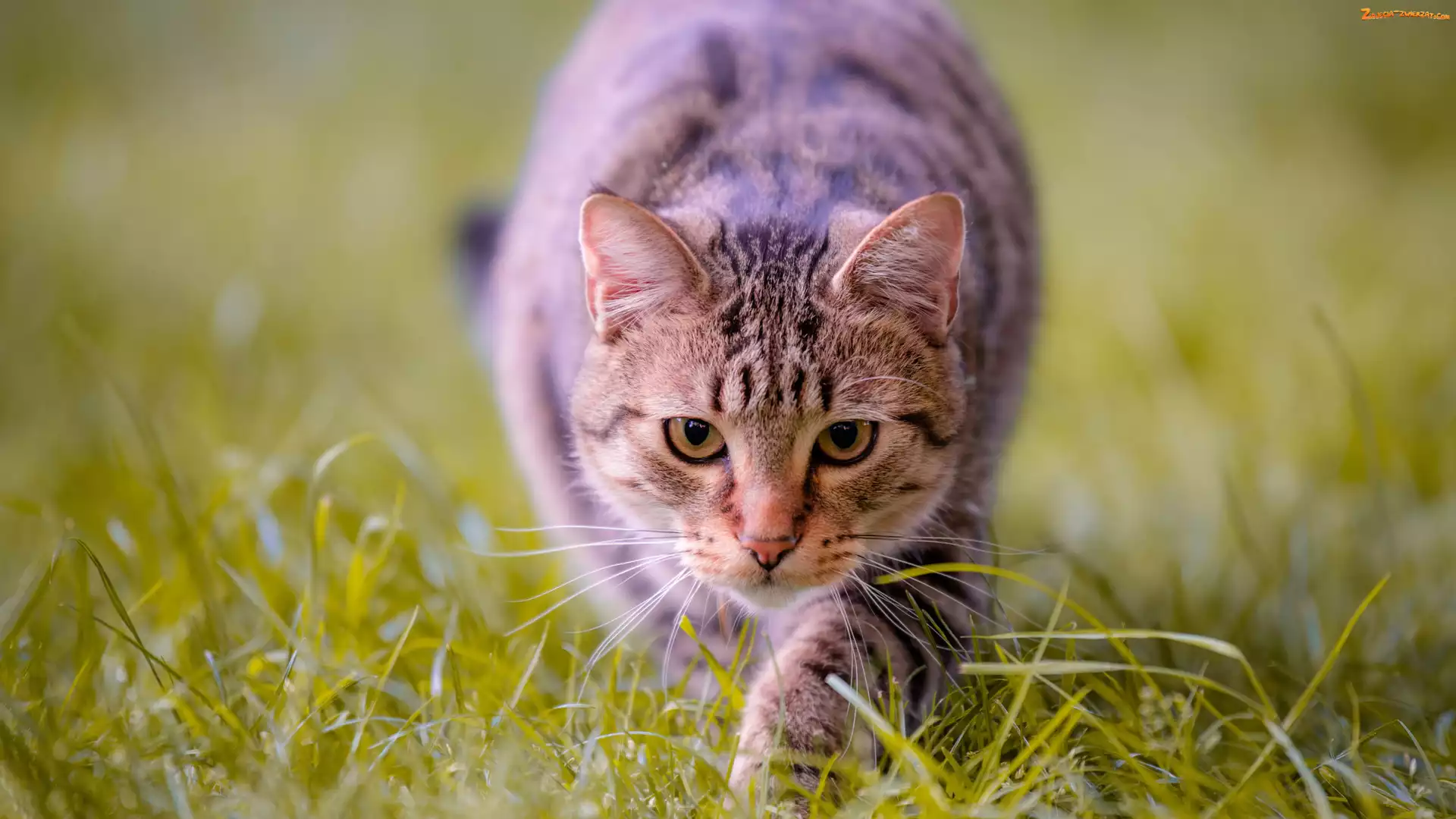 Zdjęcie: Kot, Trawa, Bury, Zielona