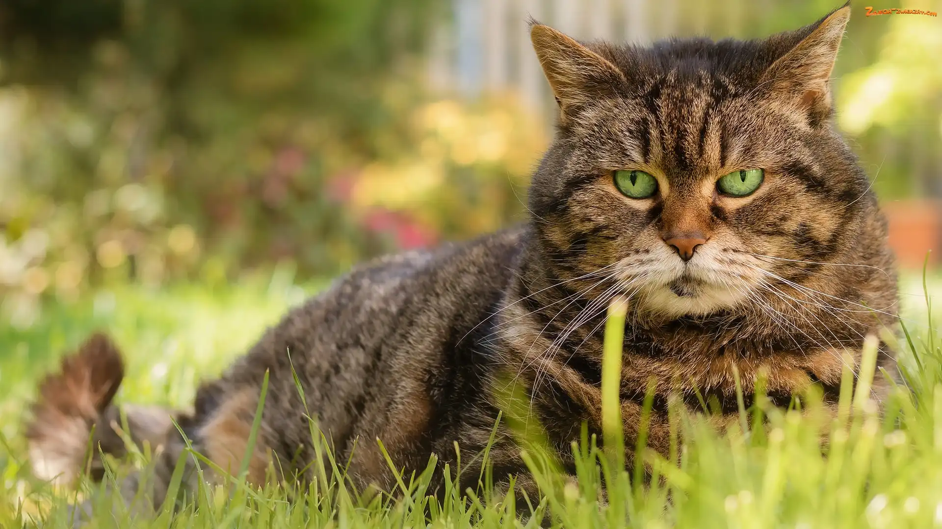 Zdjęcie: Bury, Zielonooki, Trawa, Kot