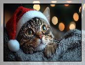 Zdjęcie: Mikołaja, Duże, Bury, Kot, Oczy, Czapka