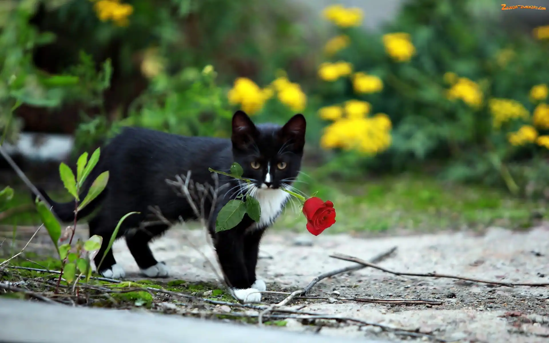 Zdjęcie: Kot, Róża, Czarny, Czerwona