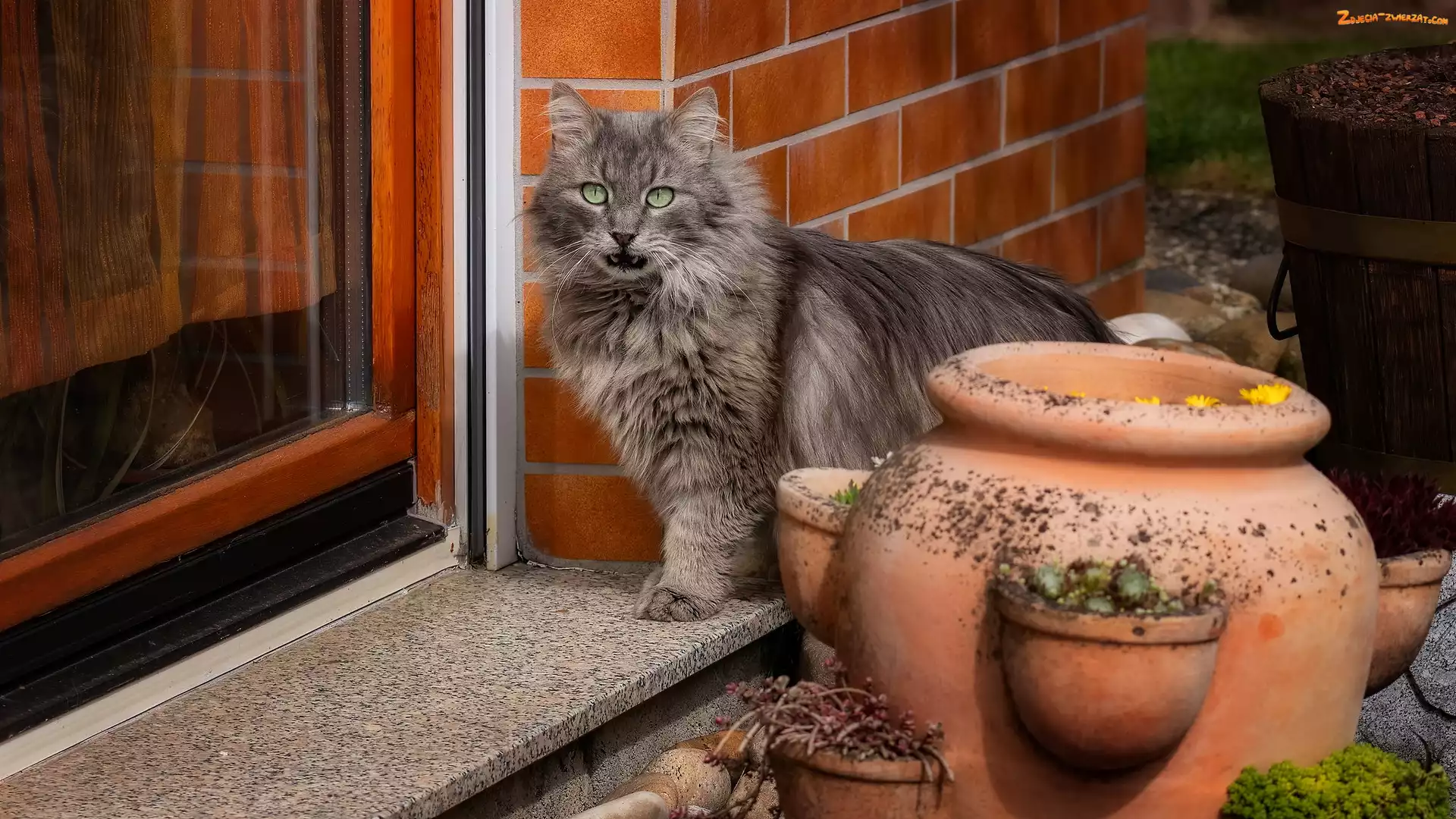 Donice, Kot, Szary, Parapet, Ogród, Długowłosy, Okno