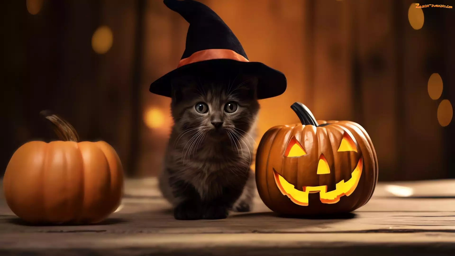 Zdjęcie: Halloween, Kapelusz, Mały, Kot, Czarny, Dynie
