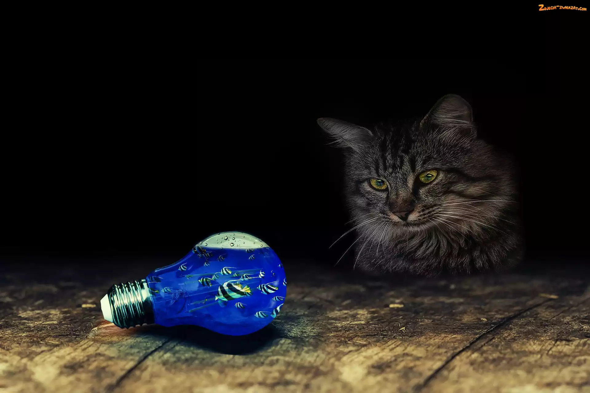 Zdjęcie: Żarówka, Fantasy, Kot, Rybki