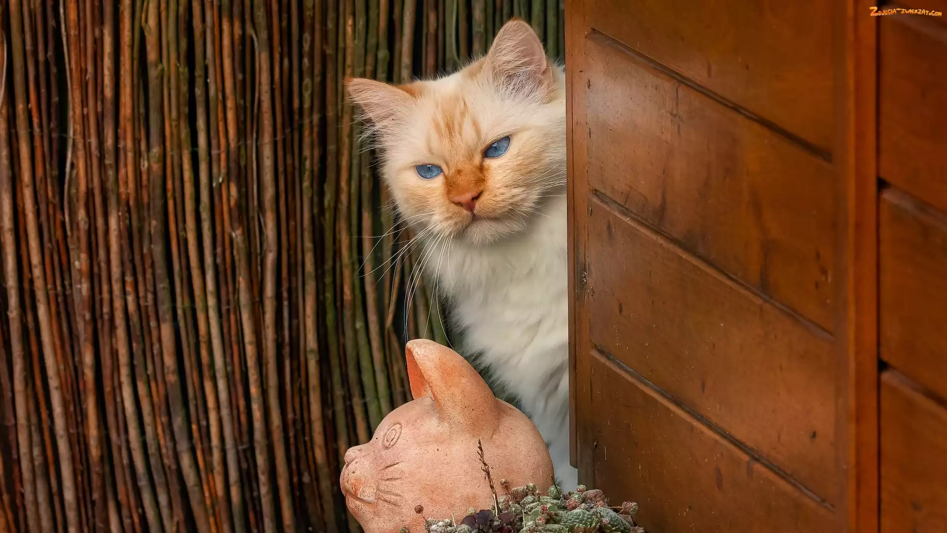Zdjęcie: Ceramiczna, Kot, Figurka, Niebieskooki, Rudawy