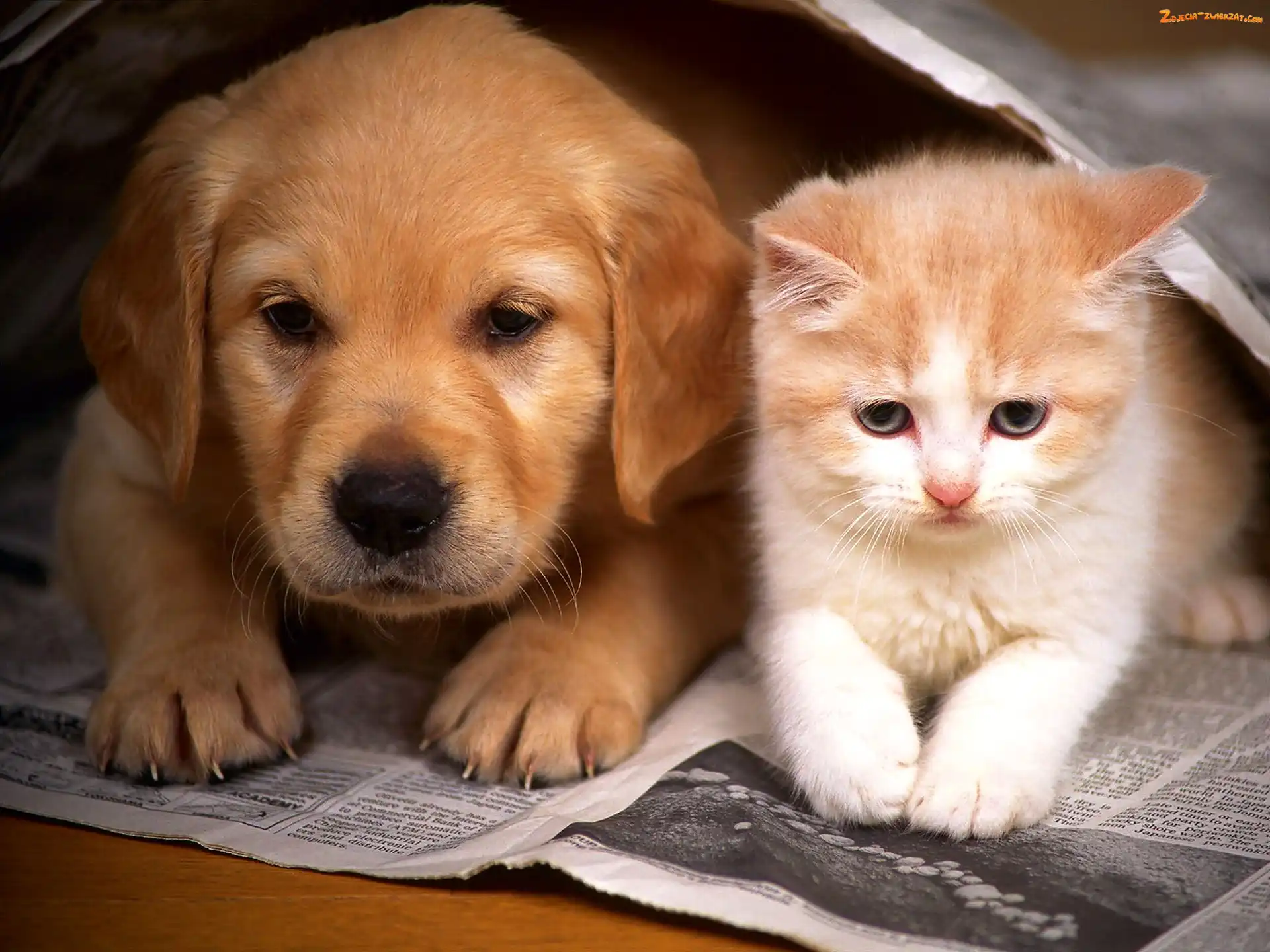Zdjęcie: Młody, Gazeta, Kot, Piesek