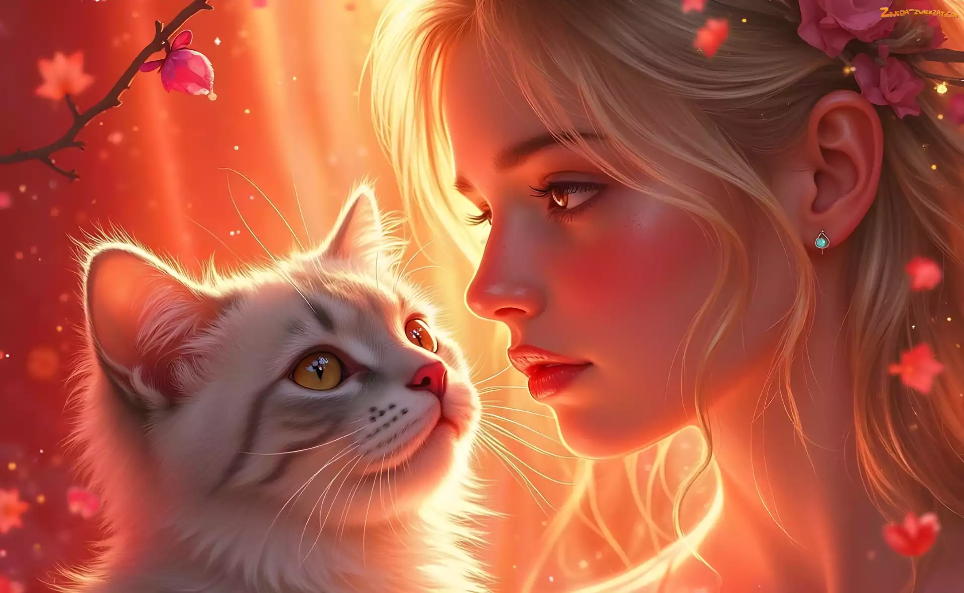 Zdjęcie: Świato, Kot, Grafika, Dziewczyna, Kwiaty