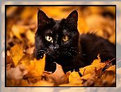 Zdjęcie: Czarny, Kot, Grafika AI, Liście
