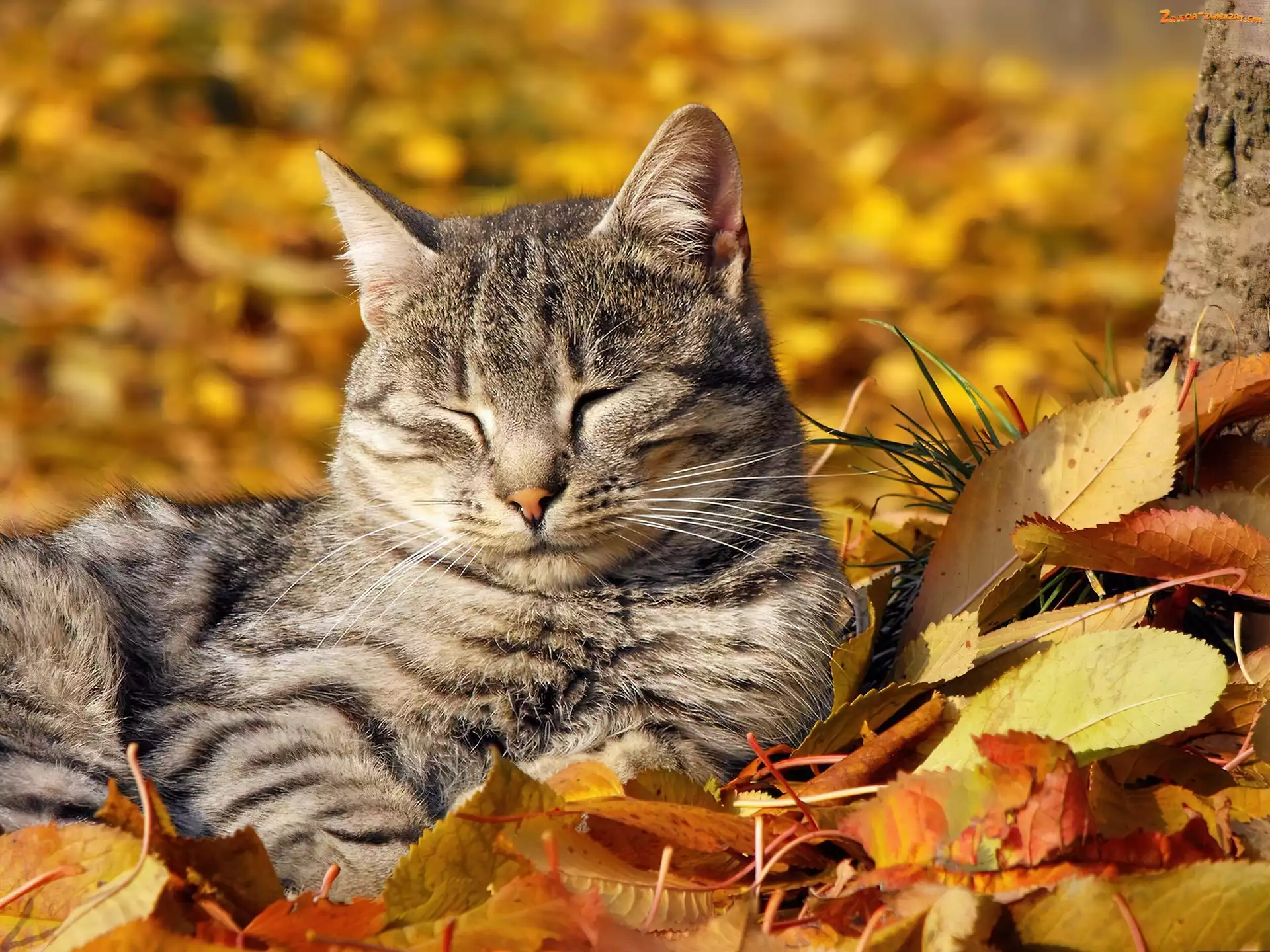 Zdjęcie: Jesień, Kot, Liście