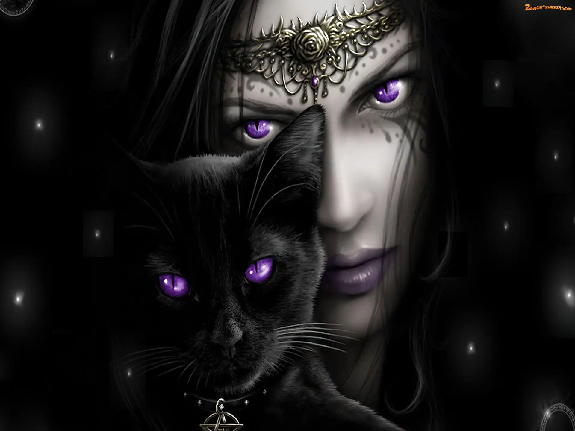 Zdjęcie: Kobieta, Kot, Oczy, Fioletowe