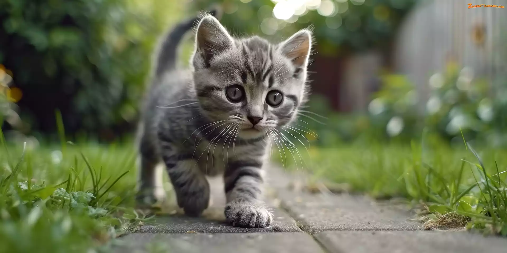 Zdjęcie: Grafika AI, Kotek, Kot, Szary, Chodnik, Trawa