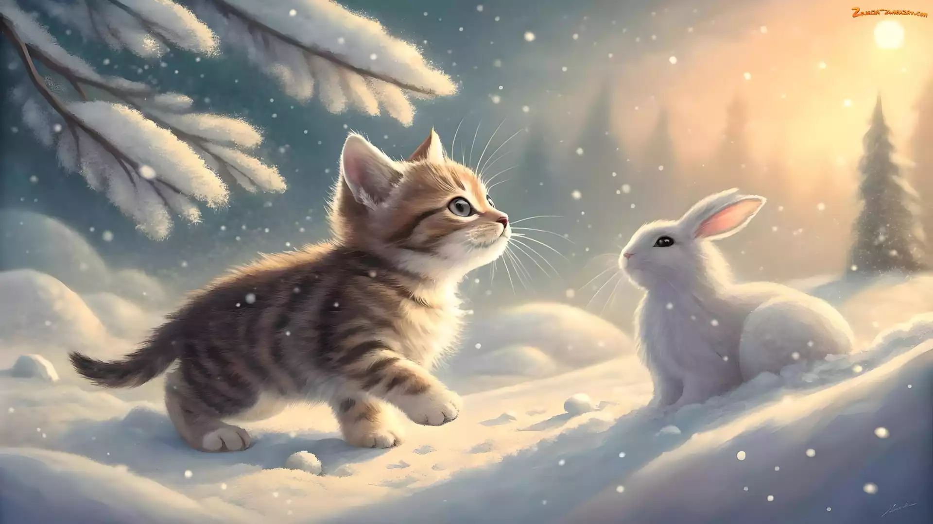 Zdjęcie: Biały, Kot, Królik, Zima, Śnieg