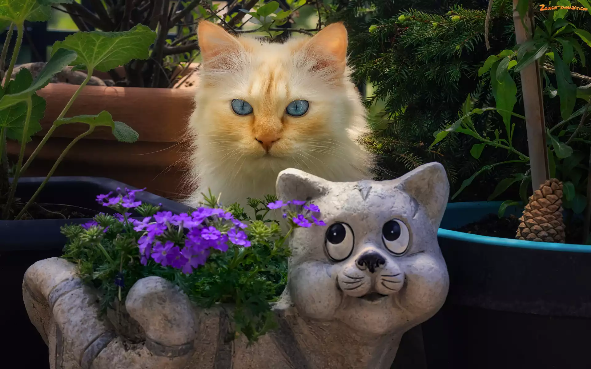 Kwiaty, Kot, Doniczki
