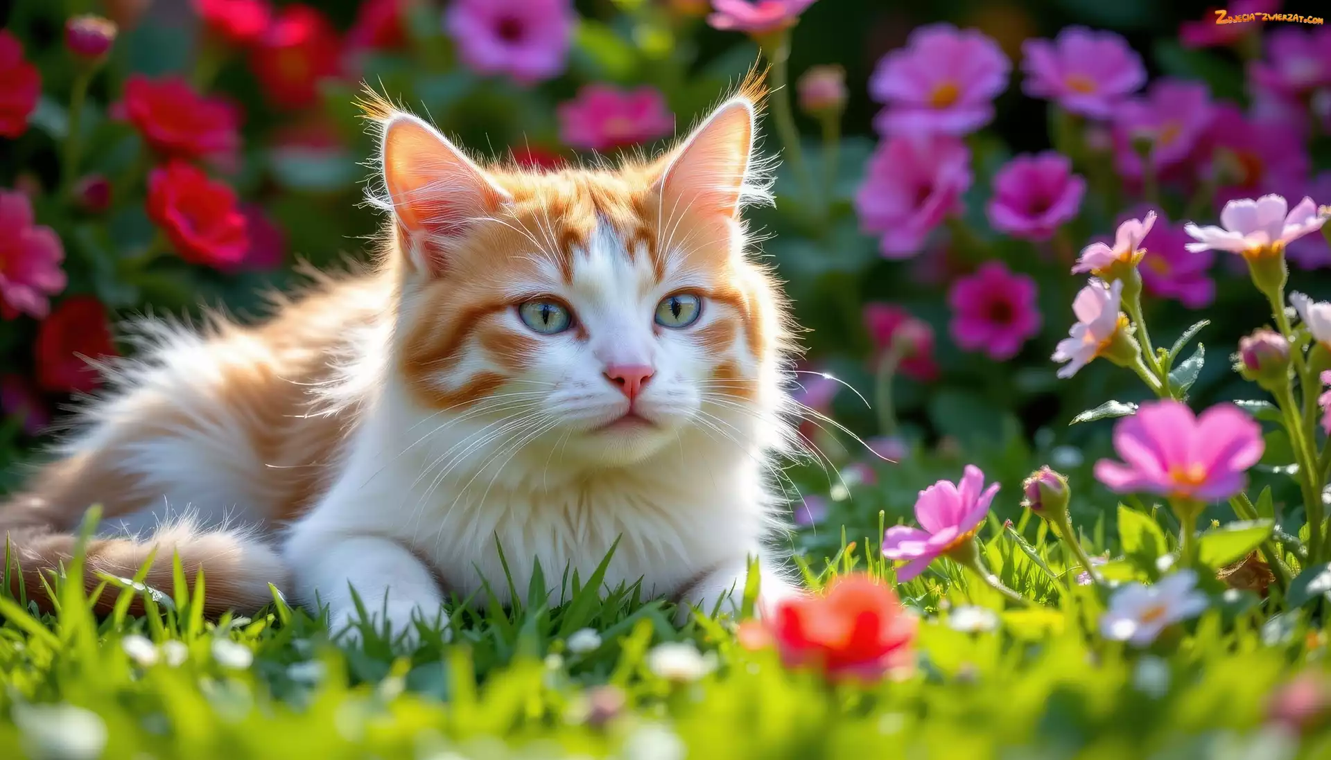 Zdjęcie: Kwiaty, Biało-rudy, Kot