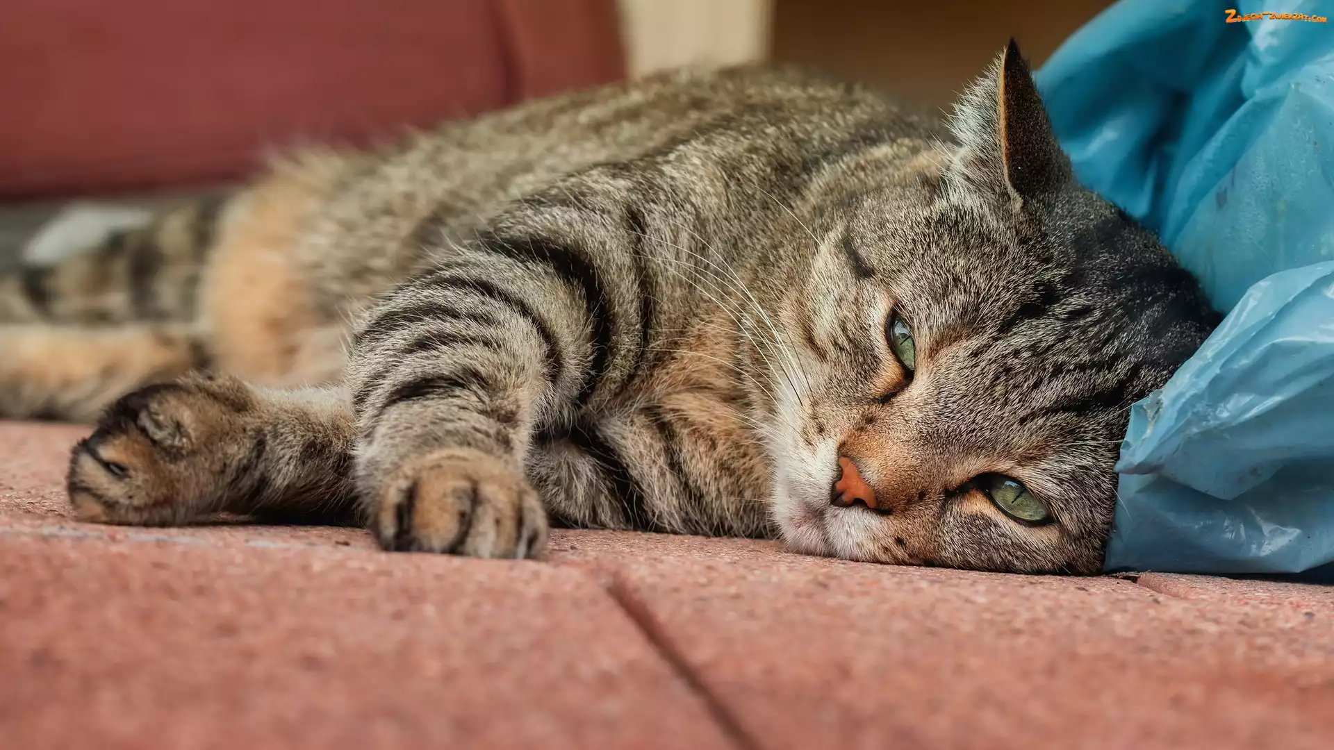 Zdjęcie: Leżący, Bury, Worek, Kot