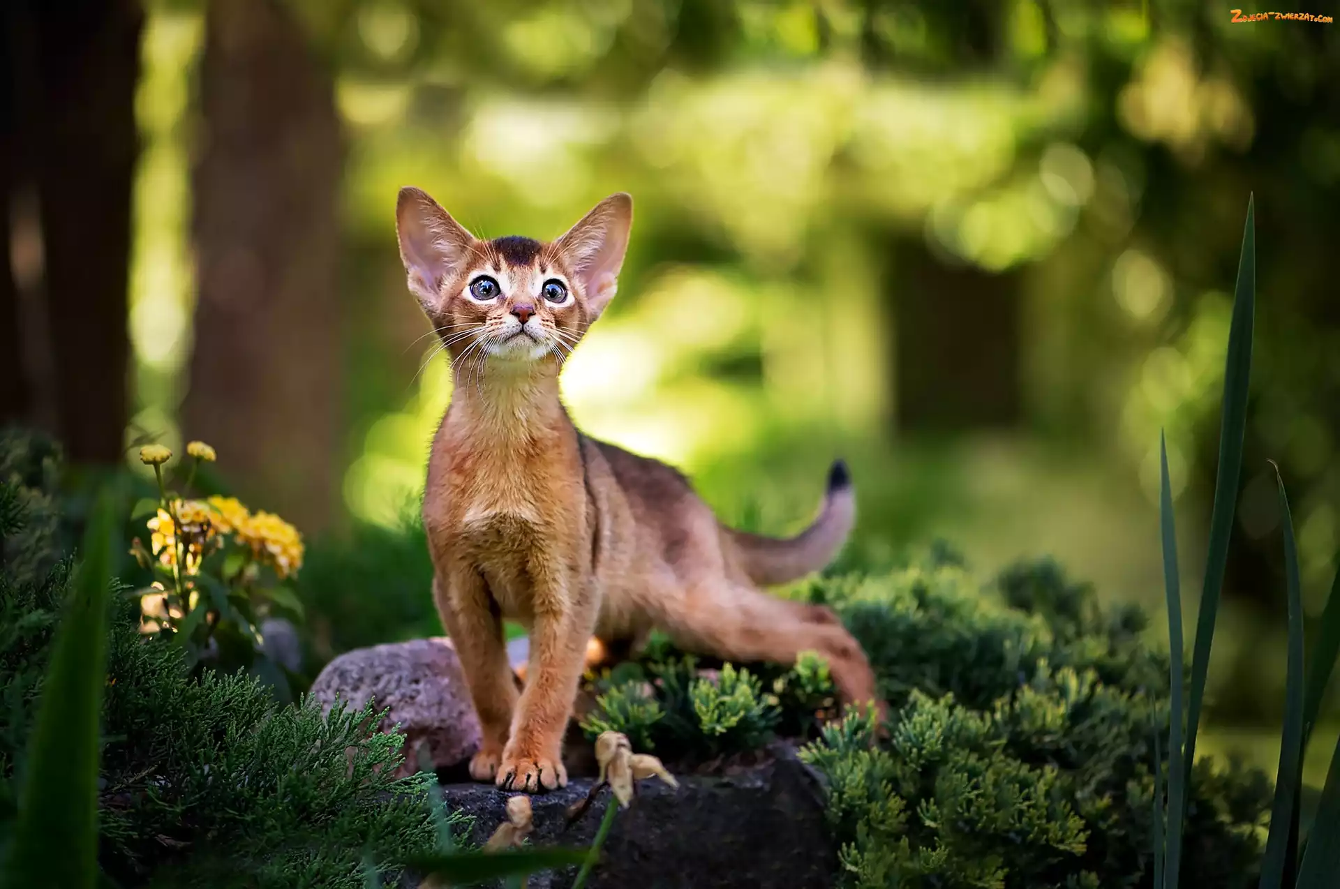 Zdjęcie: Kot abisyński, Trawa, Kotek, Mały, Kamień