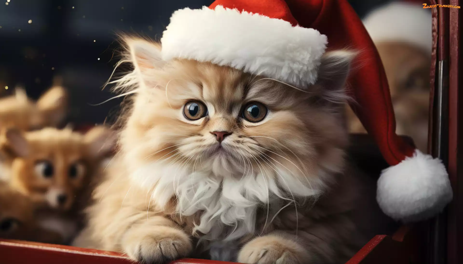 Zdjęcie: Czapka, Kot, Mikołaja, Rudy, Puszysty