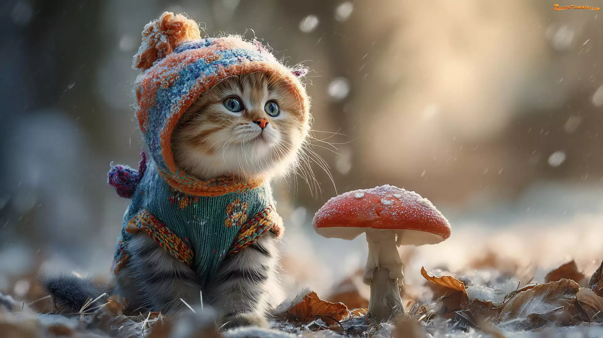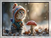 Grafika AI, Muchomor, Kot, Ubranko, Grzyb, Szron