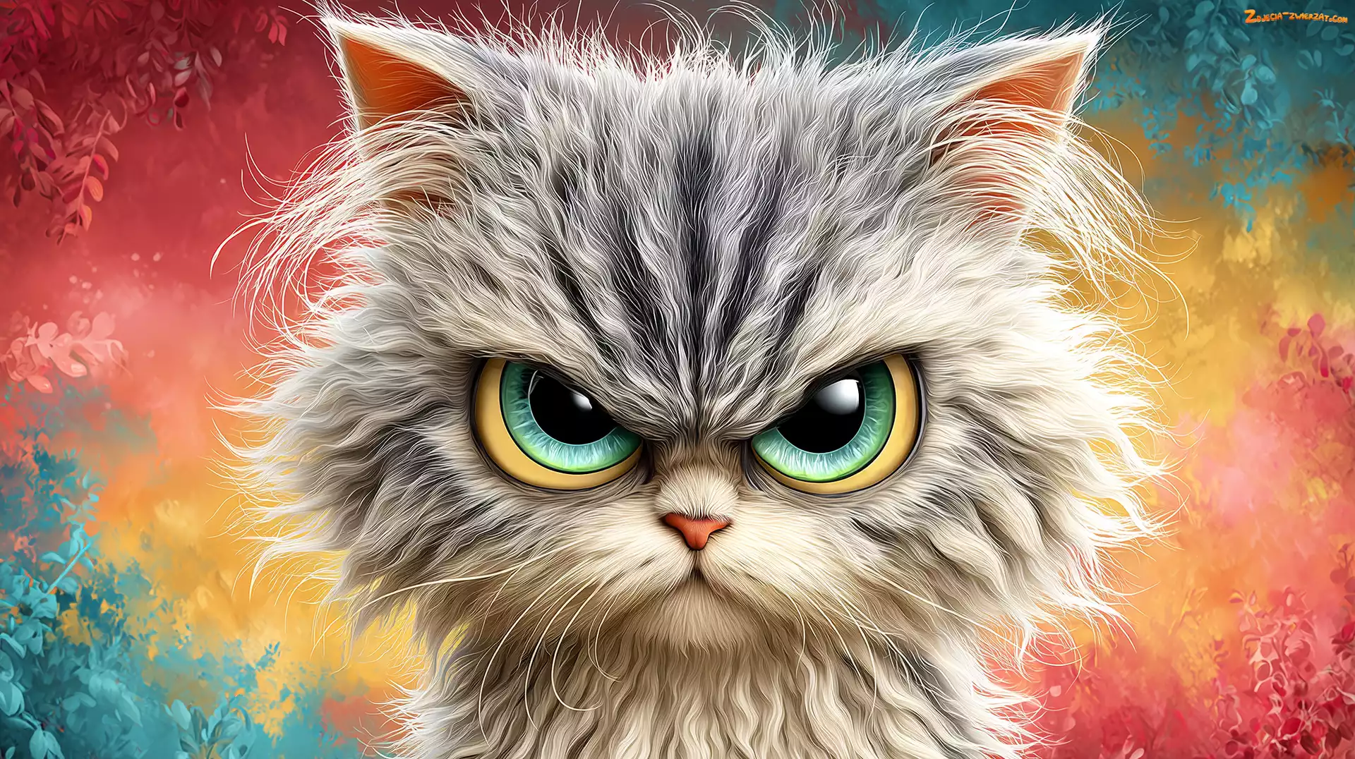 Grafika AI, Oczy, Kot, Zielone, Kolorowe, Tło