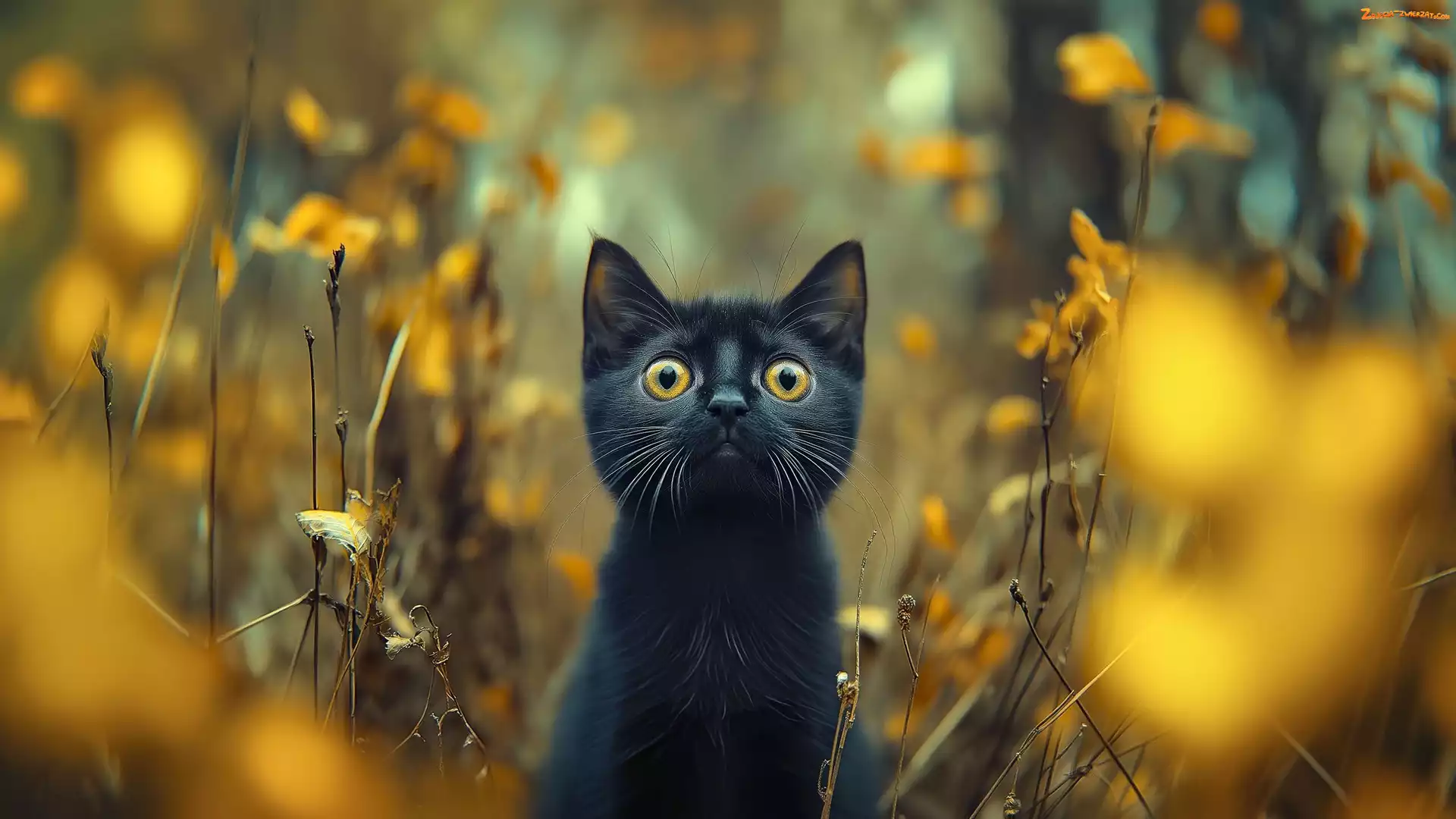 Miodowe, Kot, Oczy, Siedzący, Czarny