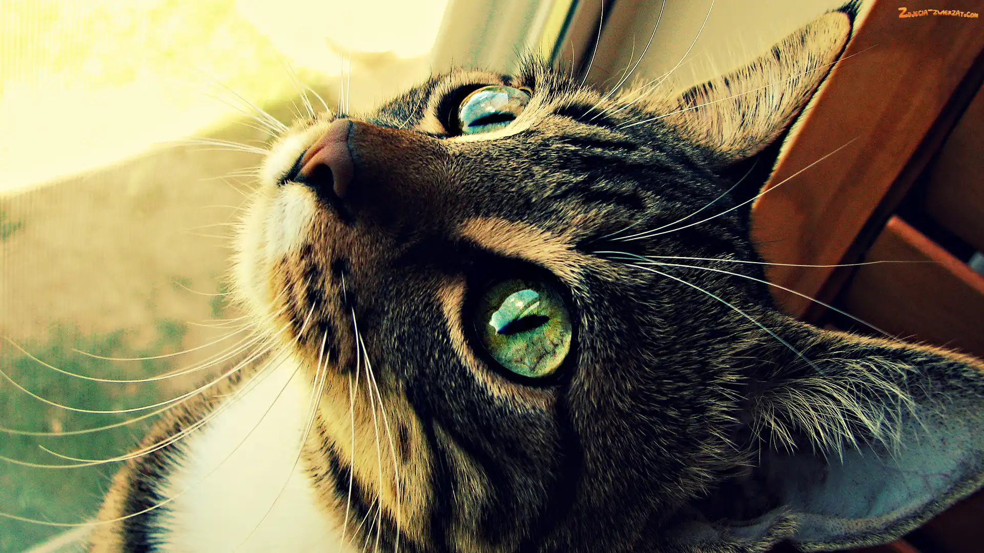 Zdjęcie: Kot, Biały, Zielone, Oczy, Spojrzenie