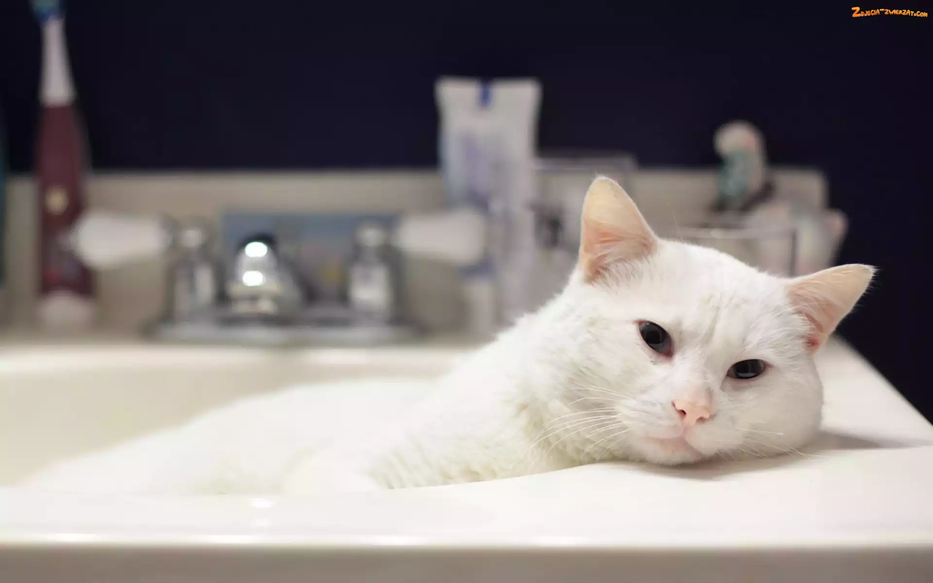Zdjęcie: Odpoczynek, Kot, Umywalka