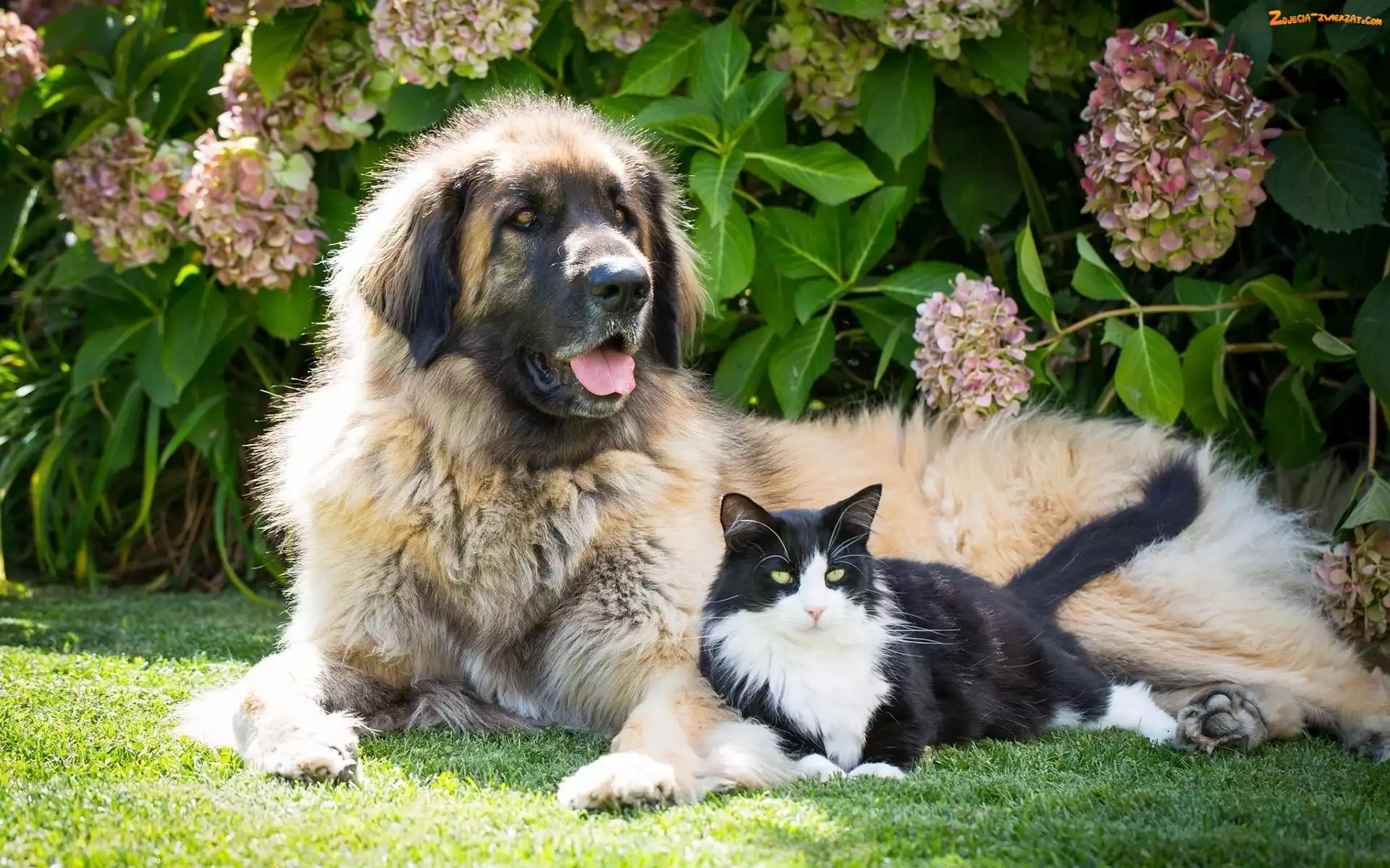 Zdjęcie: Kot, Hortensja, Pies, Kwiaty