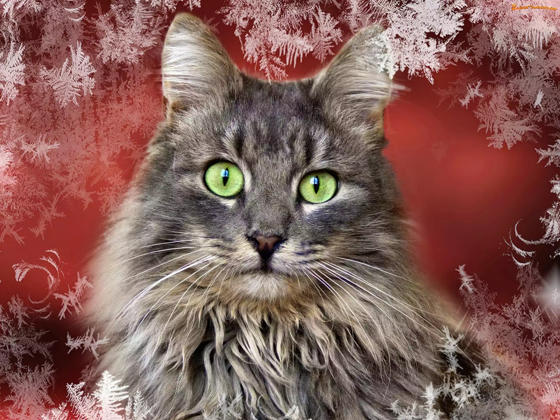 Zdjęcie: Śniegu, Płatki, Zielone, Kot, Oczy