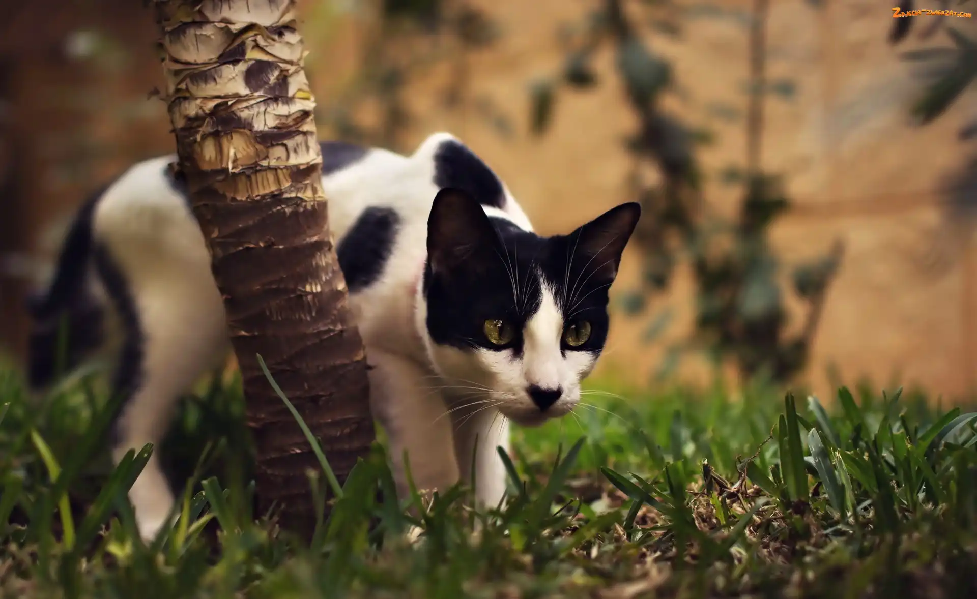Zdjęcie: Kot, Drzewo, Polujący, Trawa