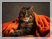 Zdjęcie: Koc, Zielone, Bury, Kot, Oczy, Pomarańczowy