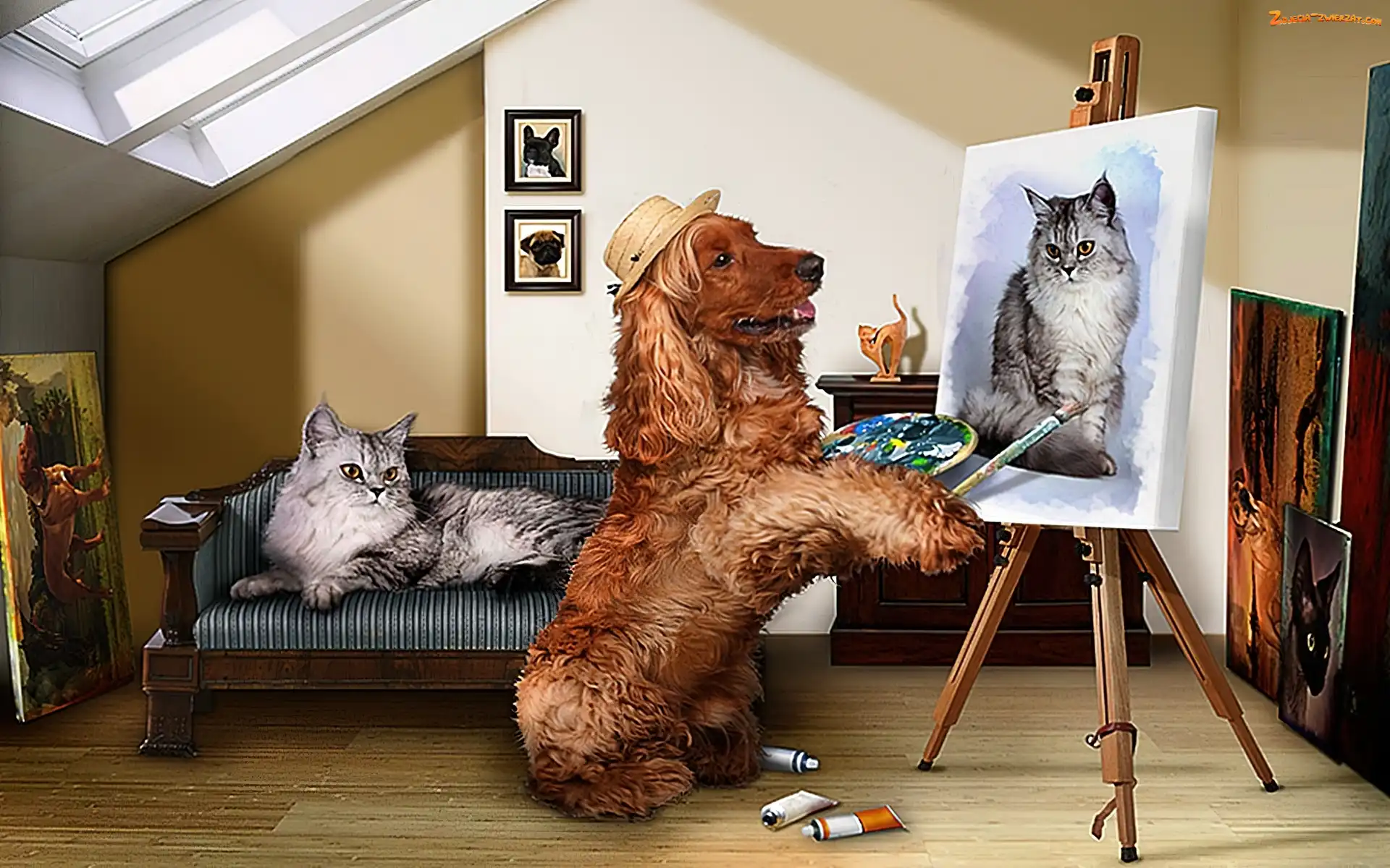 Zdjęcie: Kot, Pies, Cocker spaniel, Portret