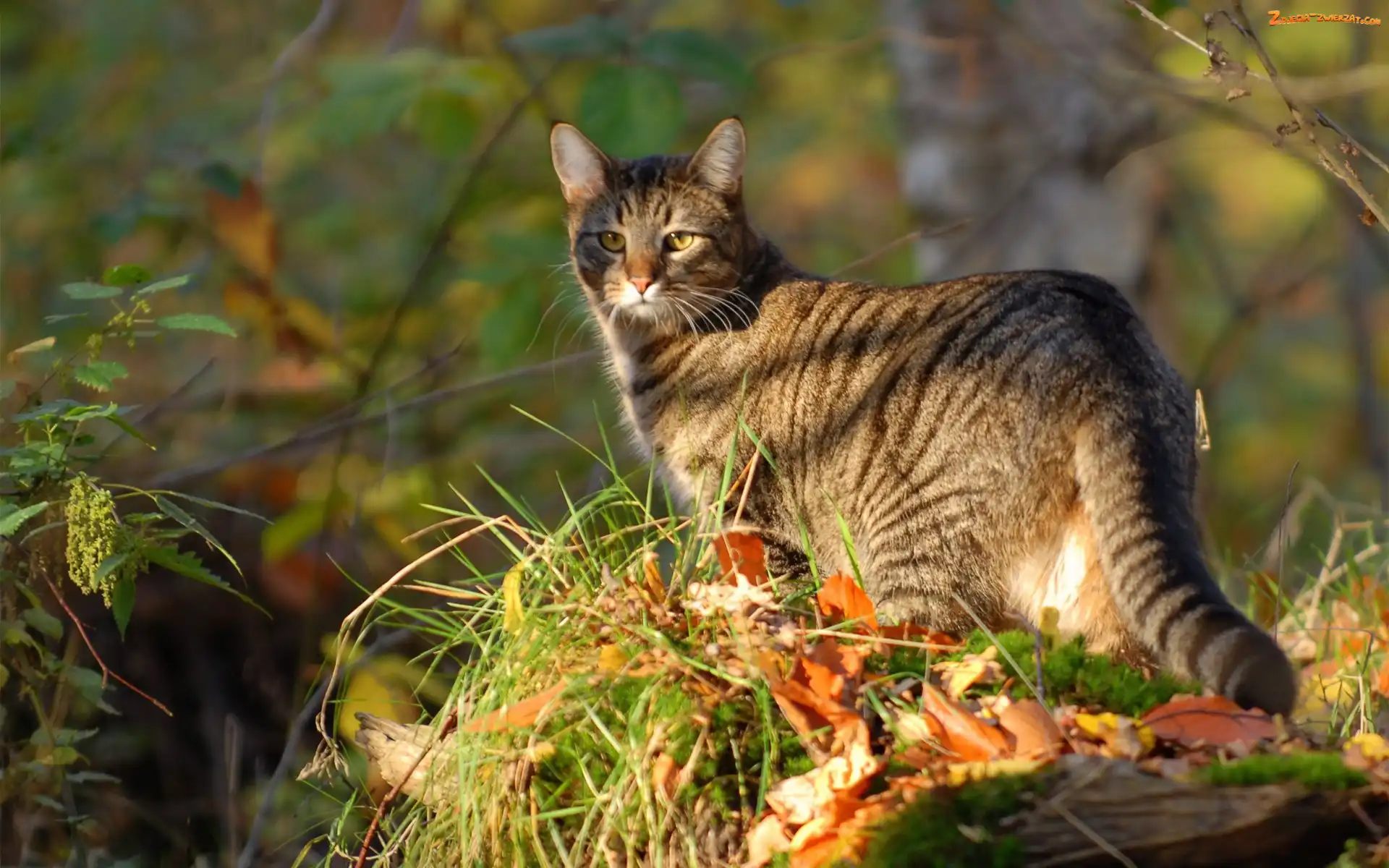 Zdjęcie: Światło, Przebijające, Trawa, Kot, Liście