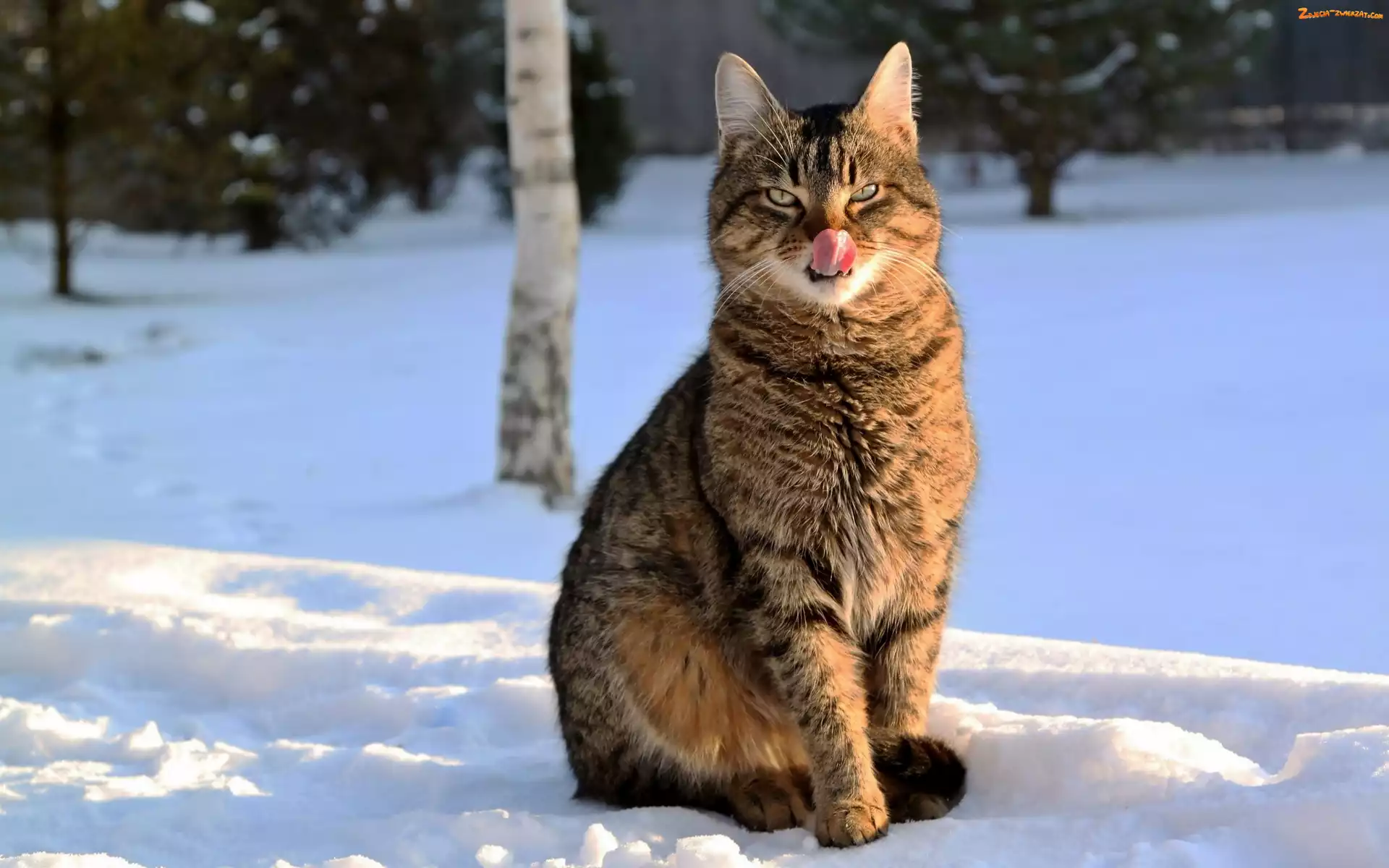 Zdjęcie: Rozmycie, Przebijające, Kot, Na Śniegu, Światło, Drzewa