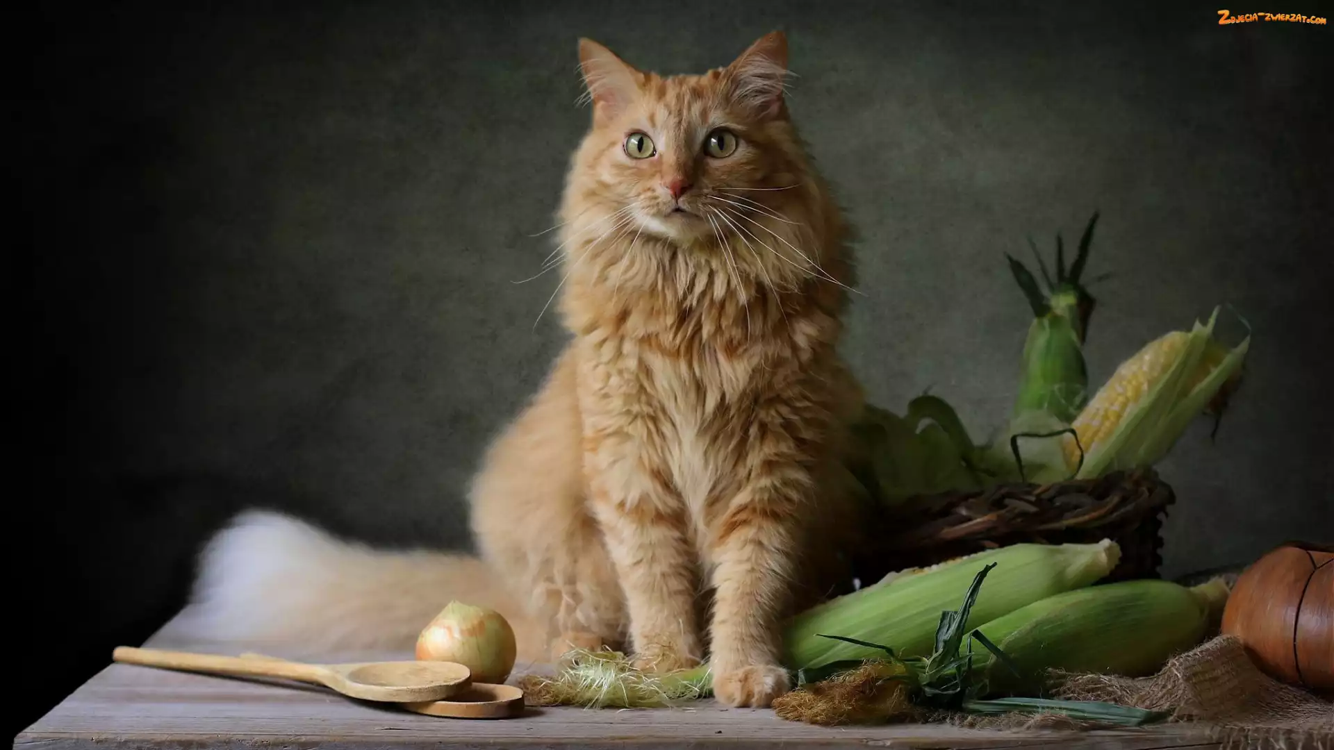 Zdjęcie: Kot, Kukurydzy, Rudy, Kolby