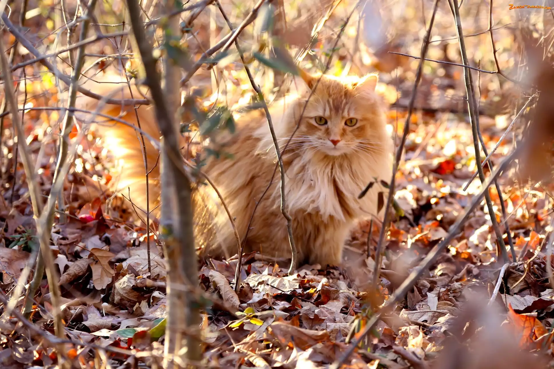 Zdjęcie: Kot, Liście , Rudy, Jesienne
