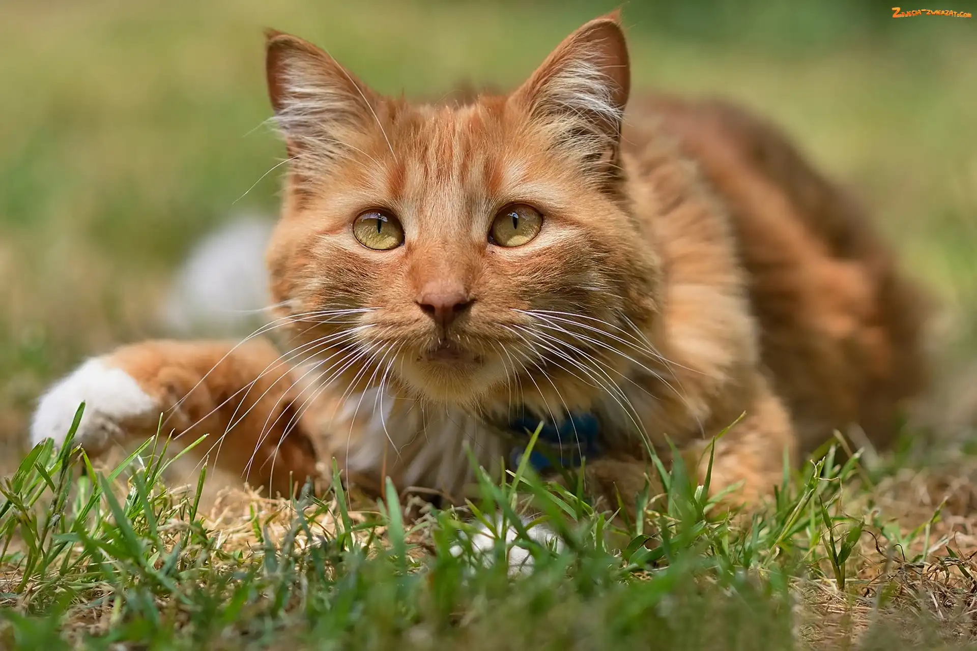 Zdjęcie: Kot, Trawa, Rudy, Spojrzenie