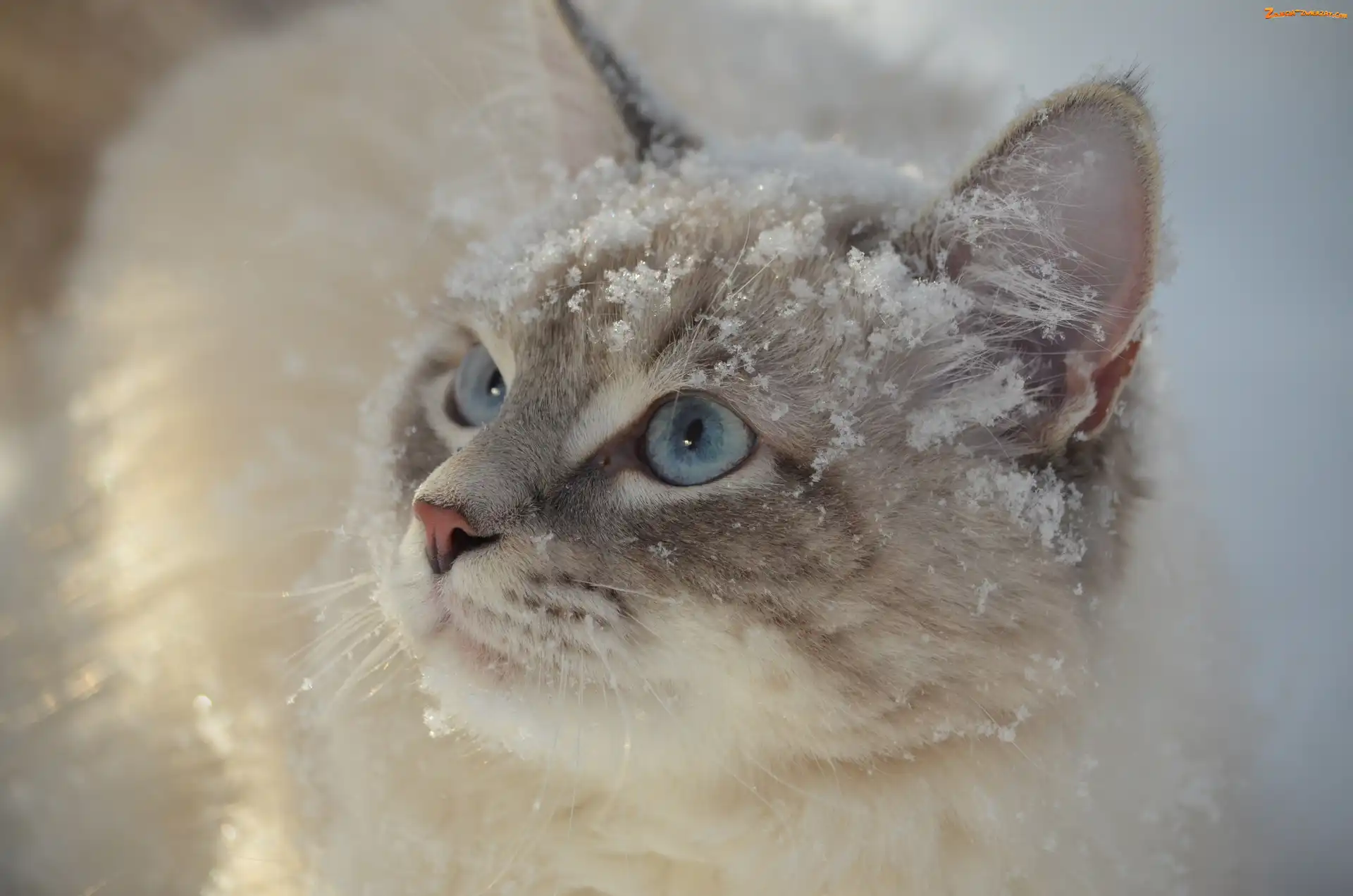 Zdjęcie: Śnieg, Spojrzenie, Błękitne, Kot, Oczy