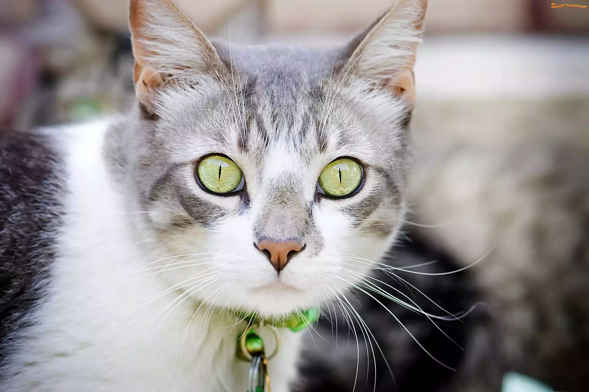 Zdjęcie: Kot, Dzwoneczek, Szary, Zielony