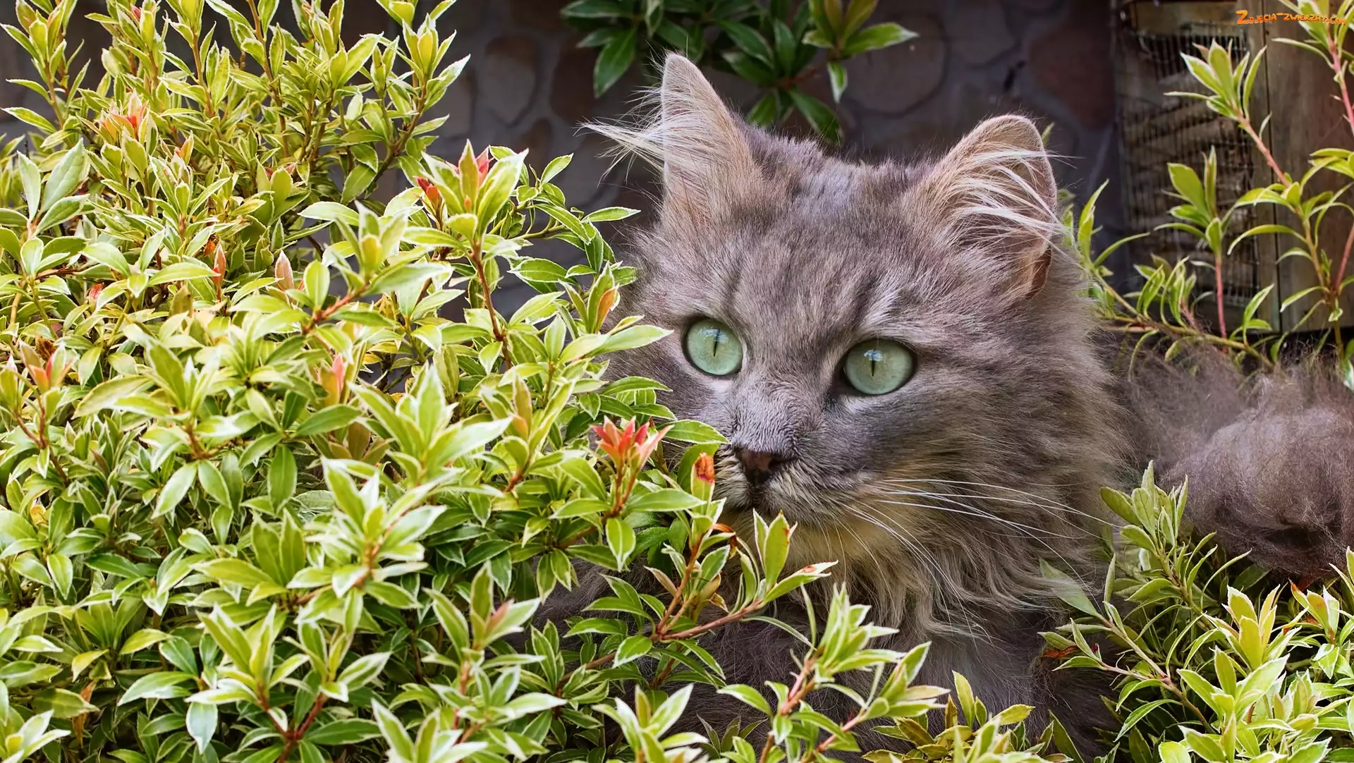 Zdjęcie: Kot, Gałązki, Szary, Krzew
