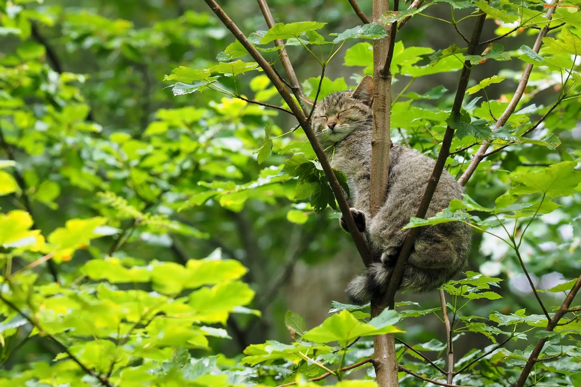 Zdjęcie: Kot, Sen, Szary, Drzewo