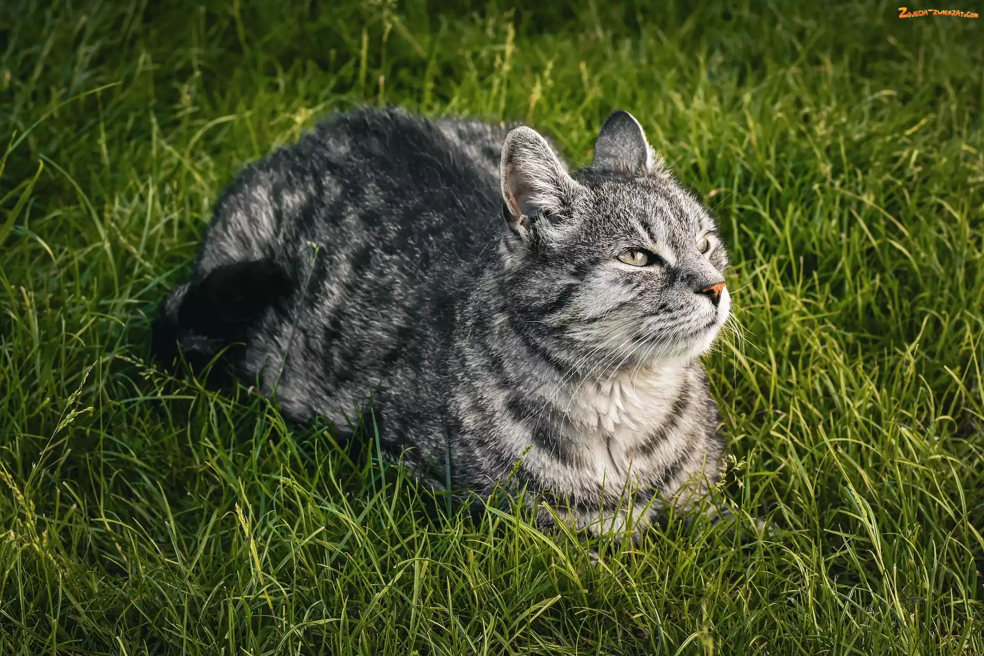 Zdjęcie: Szary, Leżący, Trawa, Kot