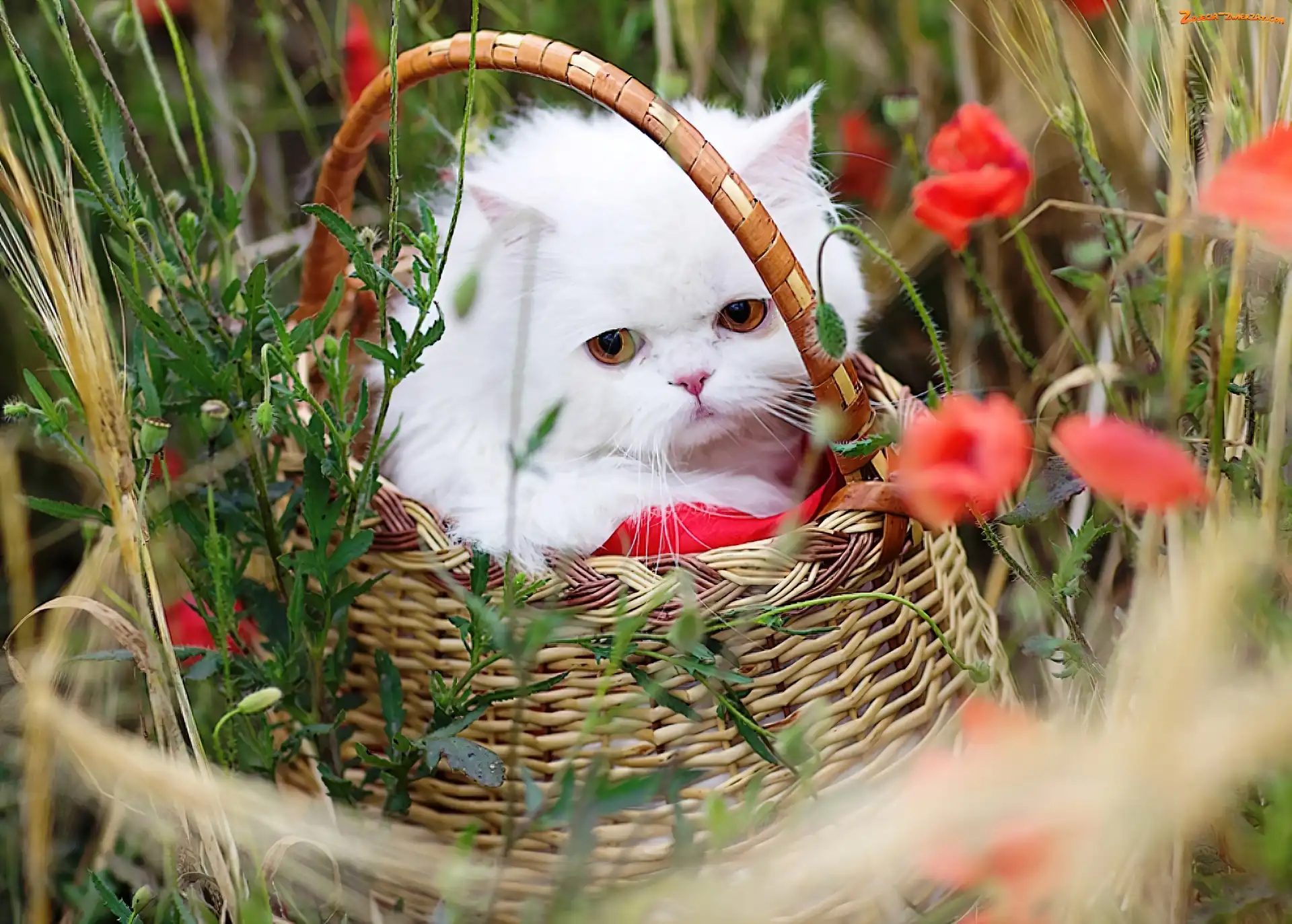 Zdjęcie: Kotek, Kwiaty, Biały, Koszyk