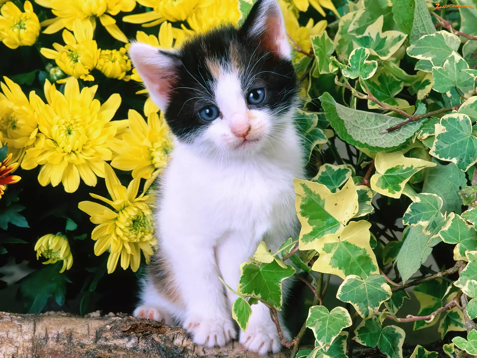 Zdjęcie: Kwiaty, Kotek, Liście
