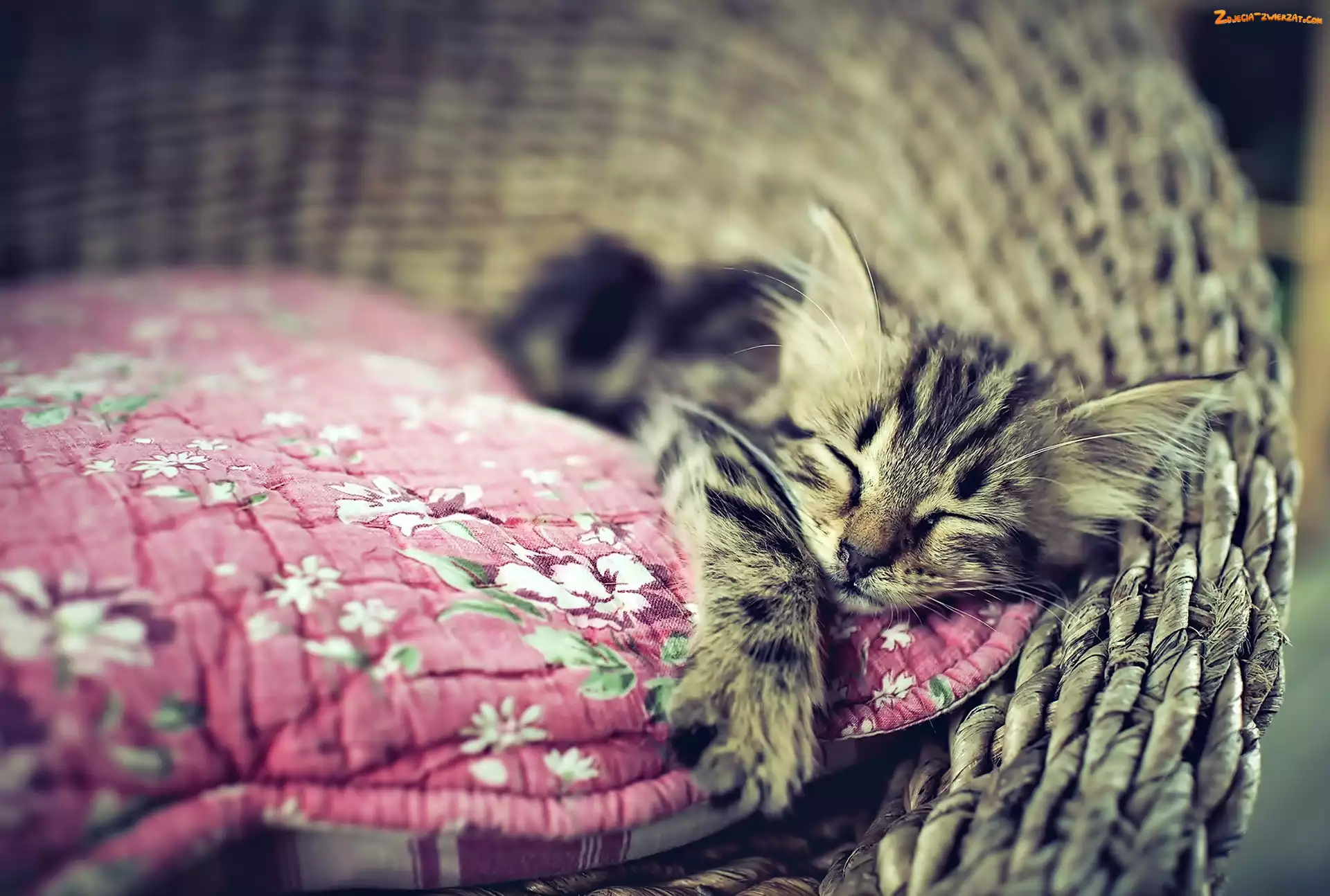 Zdjęcie: Kotek, Śpiący, Kołderka, Różowa, Mały, Koszyk