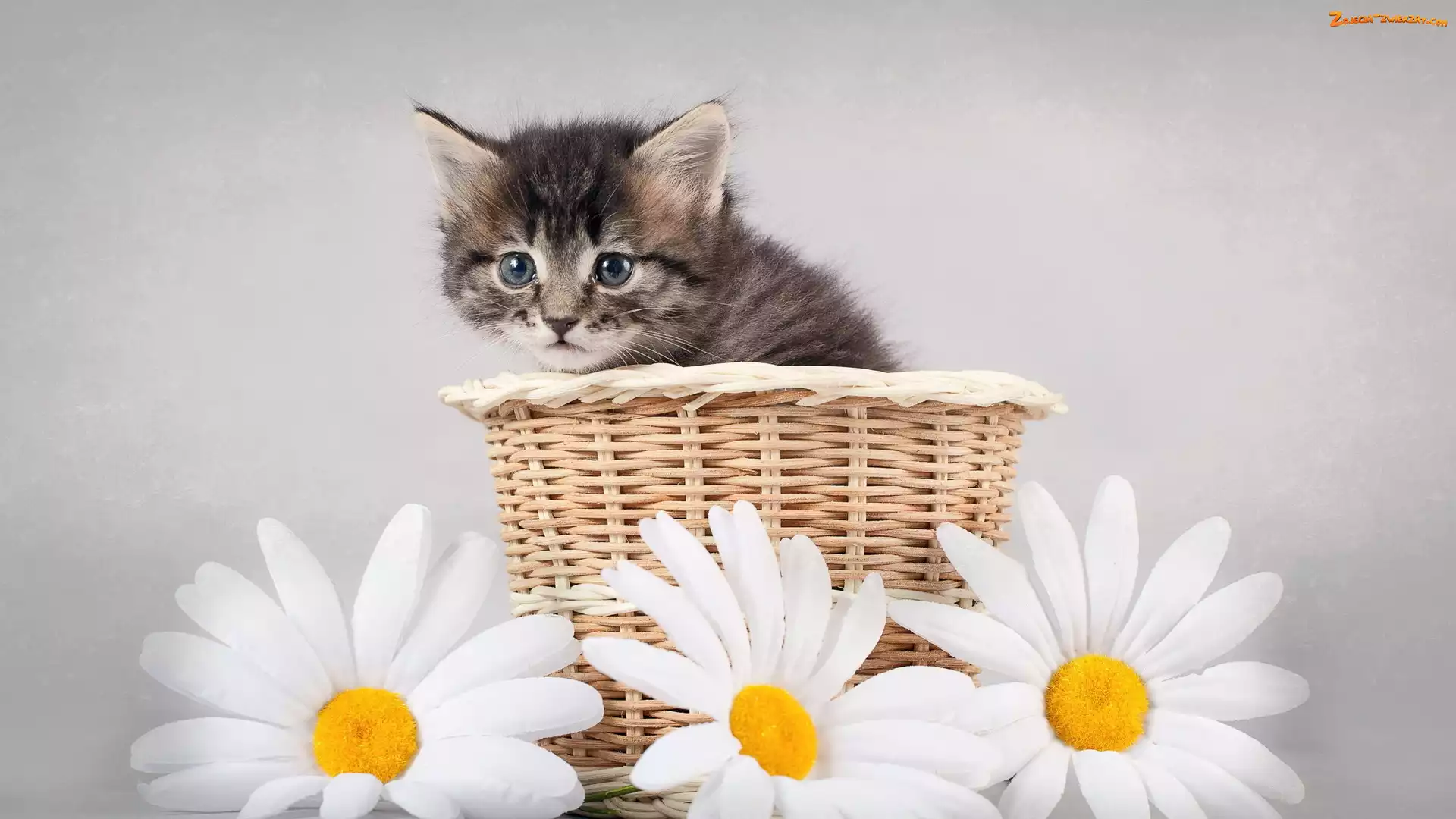 Zdjęcie: Kotek, Niebieskooki, Margerytki, Sztuczne, Mały, Koszyk
