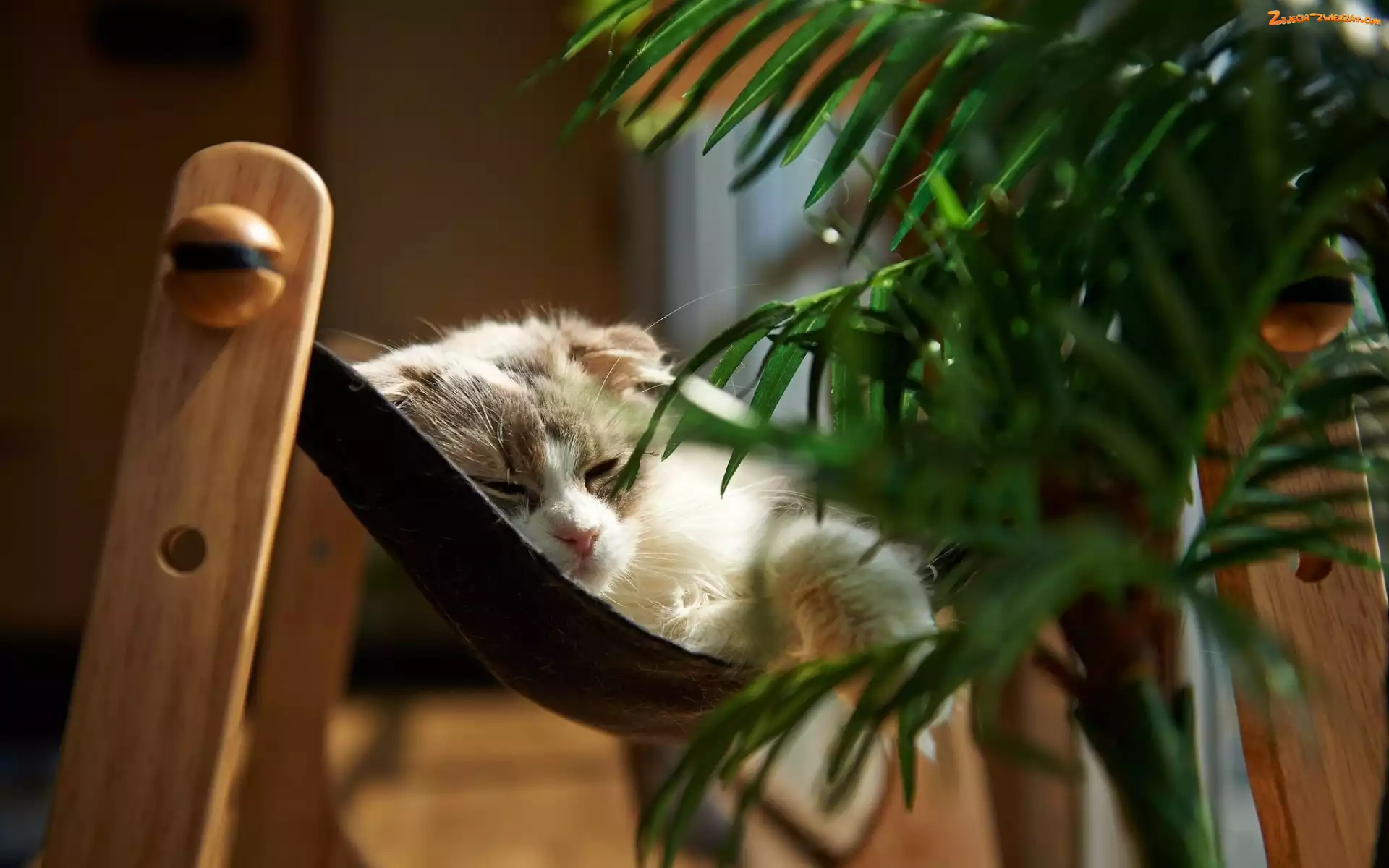 Zdjęcie: Kotek, Palma, Śpiący, Hamak