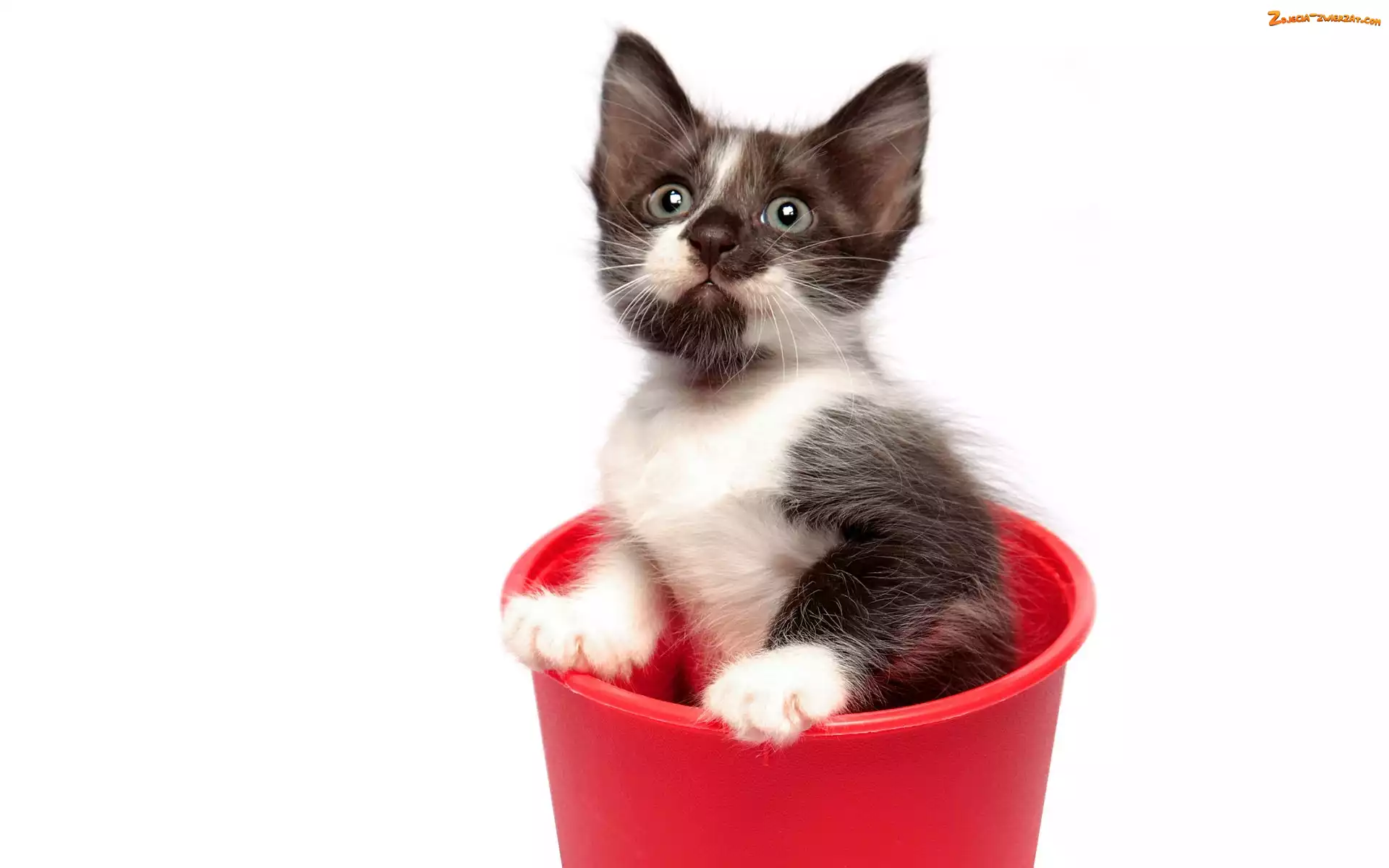 Zdjęcie: Kotek, Doniczka, Zaskoczony, Czerwona